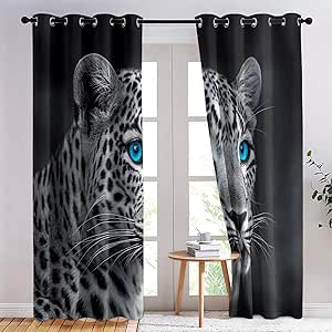 Leopard Verdunklungsvorhänge 2er Set - Blaue Gepardendruck Gardinen 220x140cm