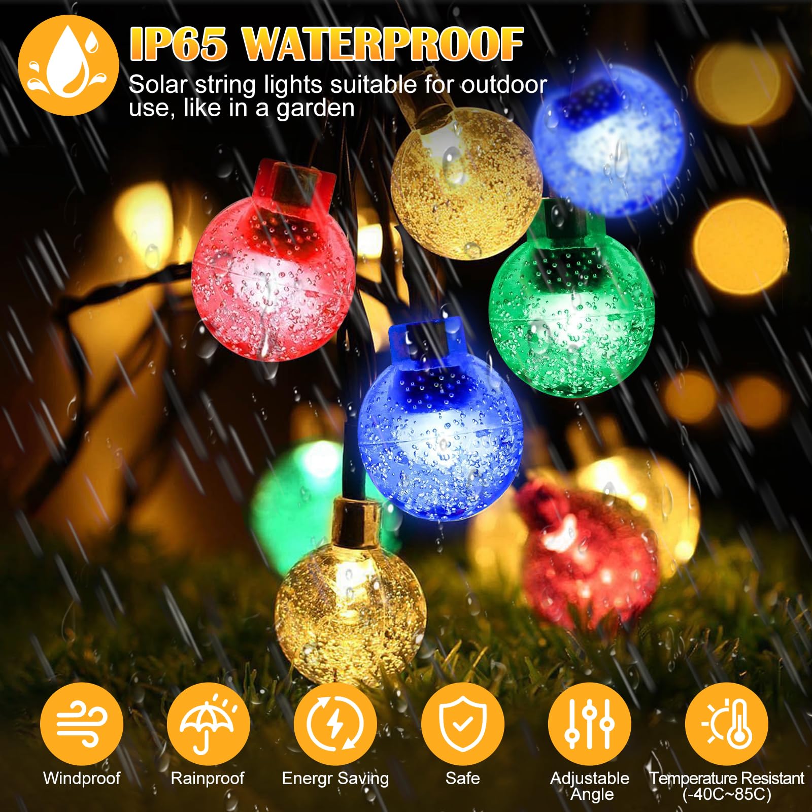 IP65 wasserdicht heißt: Keine Angst vor Regen oder Schnee! 8 verschiedene Beleuchtungsmodi stehen zur Auswahl - von sanftem Glimmen bis zu bunten Farbspielen. Der Speicherchip merkt sich deine letzte Einstellung.