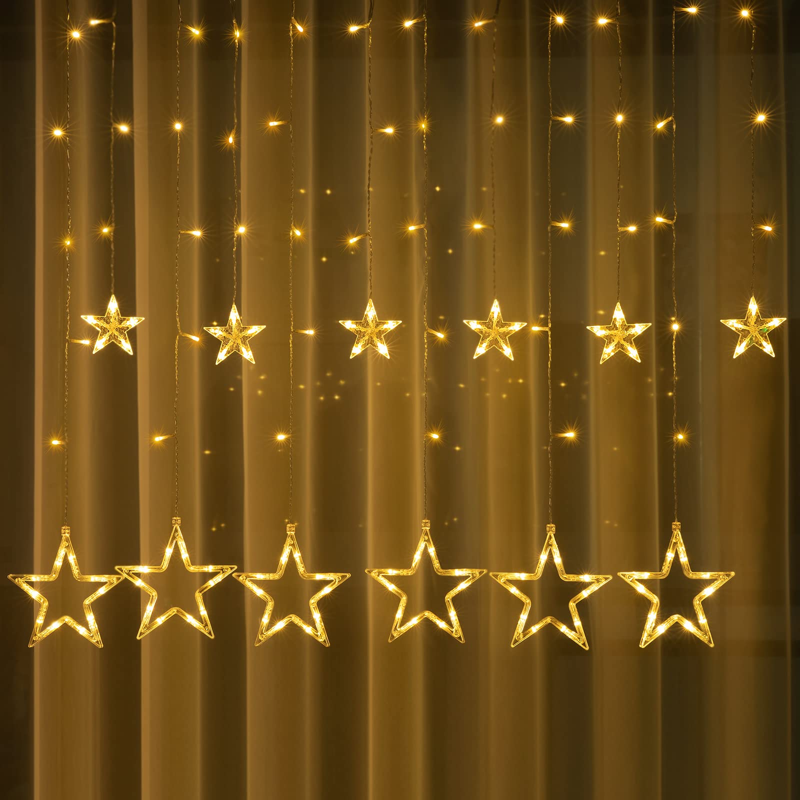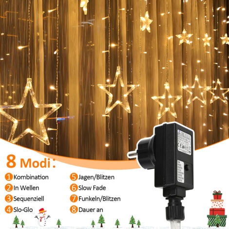 Verwandelt euer Zuhause in ein winterliches Märchenland! Dieser wunderschöne Sternen-Lichtervorhang von BLOOMWIN bringt magische Weihnachtsstimmung in jeden Raum. Mit 138 warmweißen LEDs und 12 hängenden Sternen (6 kleine à 9,5 cm und 6 große à 18,5 cm) schafft er eine richtig gemütliche Atmosphäre. Der Vorhang misst 2x1 Meter und ist super vielseitig - ob am Fenster, an der Wand oder an der Decke. Das wasserdichte Batteriegehäuse (benötigt 3 AA Batterien) macht ihn unabhängig von Steckdosen, sodass ihr ihn auch draußen am Balkon verwenden könnt. Mit der praktischen Fernbedienung könnt ihr zwischen 8 verschiedenen Lichtmodi wählen - von konstantem Licht bis zu verschiedenen Blinkeffekten. Einfach aufhängen, Batterien rein und schon strahlt euer Zuhause in festlichem Glanz! Perfekt für Weihnachten, Partys oder einfach für gemütliche Abende.