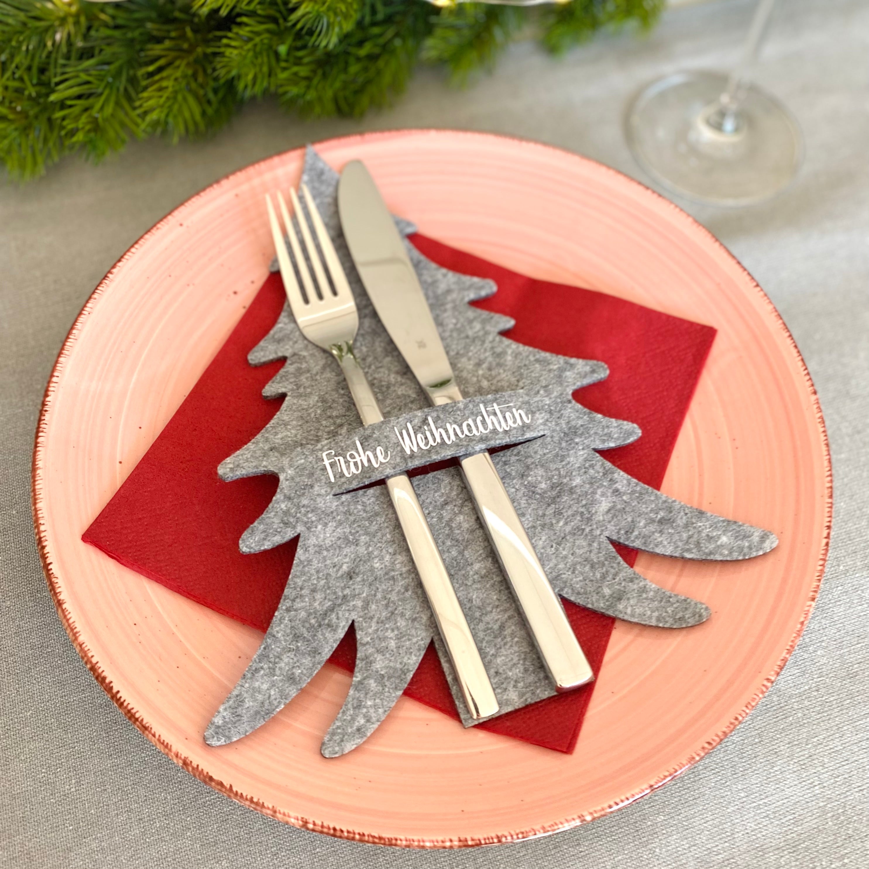 Wie süß sind denn diese Bestecktaschen? Im Set sind 12 Stück in schickem Grau, perfekt für deine nächste Feier! Jede Tasche ist 22 cm lang und hat den niedlichen Aufdruck 'Mit Liebe gekocht' - das verleiht deinem gedeckten Tisch sofort eine gemütliche, persönliche Note. Aus weichem 100% Polyester-Filz gefertigt, sind sie nicht nur dekorativ, sondern auch super praktisch: Sie halten Besteck und Servietten ordentlich zusammen und schützen vor Flecken. Ob für Hochzeiten, Geburtstage, Weihnachten oder einfach für den schön gedeckten Alltagstisch - diese Taschen machen jedes Essen besonders. Die schlichte graue Farbe passt zu jedem Geschirr und jeder Tischdecke. Auch als Gastgeschenk oder kleines Mitbringsel für Kochbegeisterte total beliebt. Mach deine Tischdeko unvergesslich!