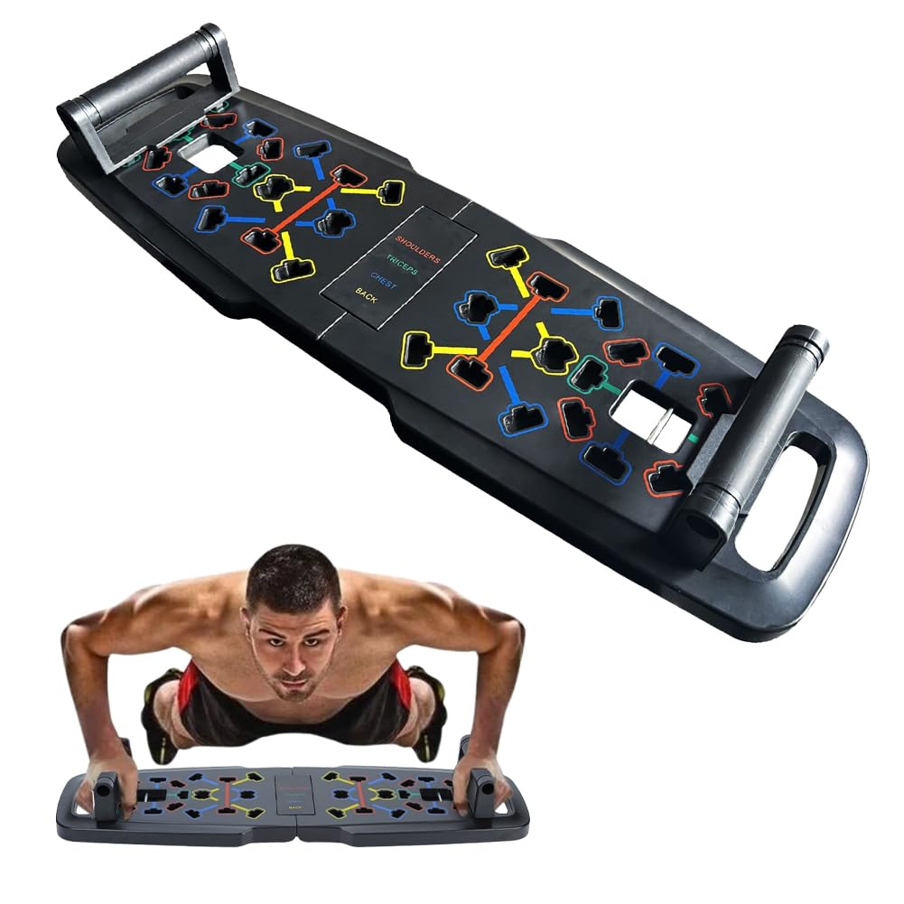 • Multifunktionales Push Up Board mit farbcodierten Griffen