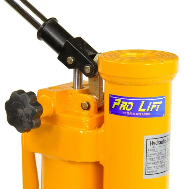 Für richtig schwere Brocken! Dieser hydraulische Maschinenheber von Pro-Lift bringt satte 10 Tonnen auf die Waage. Perfekt fürs Heben und Ausrichten von Maschinen, auch wenn's mal eng wird. Der Hubbereich ist super flexibel: Mit Lasche 30-260mm, mit Kopf sogar 420-650mm. Das Gehäuse lässt sich um 360° schwenken und das Öffnungsventil sorgt für gefühlvolles Ablassen. Die verchromte Pumpstange macht das Bedienen leicht. Mit 35kg Gewicht und 220x170mm Standfläche steht das Teil bombenfest. Es gibt ihn auch in 5t und 25t - aber die 10t Version ist der echte Allrounder. Ob in der Werkstatt, Fabrik oder auf der Baustelle - mit diesem Heber bewegst du alles, was zu schwer für Menschenhände ist. Einfach unverzichtbar für alle, die mit schwerem Gerät arbeiten!