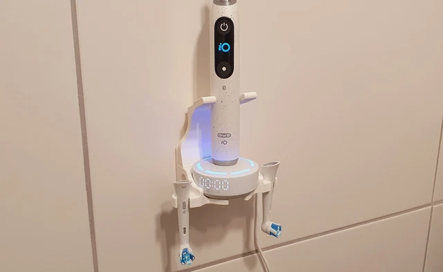 Endlich Ordnung im Badezimmer! Diese Wandhalterung von Linkidea hält deine Oral-B elektrische Zahnbürste und ihr Ladegerät sicher an der Wand. Kompatibel mit iO Series 3/5, Genius, Smart und Pro Modellen (ovales Ladegerät). Das clevere Design versteckt die Kabel hinter der Halterung - kein Kabelsalat mehr! Aus robustem Acryl mit selbstklebendem Pad und Schrauben zur sicheren Befestigung. Maße: 7,5x5,5x5,5cm. Einfach zu montieren, einfach zu reinigen. Schafft mehr Platz auf der Ablage und sieht dabei noch stylisch aus. Nur Halterung - Zahnbürste und Ladegerät separat.