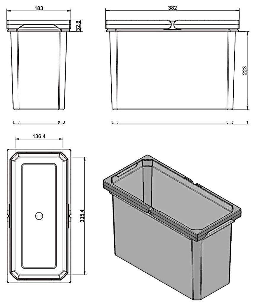 • Naber Mülleimer 9 Liter Grau - Kompakter Abfalleimer 183x302x256mm