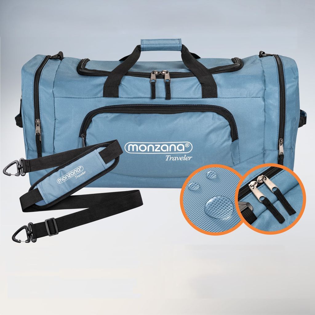 Die eine Tasche für alles! Diese vielseitige Sporttasche gibt's in 58, 90 oder 120 Liter - für jeden Bedarf die passende Größe. Das geniale Design vereint Sporttasche, Reisetasche und Rucksack in einem. Das separate Nassfach ist perfekt für nasse Badesachen, Schmutzwäsche oder Schuhe - so bleibt alles andere trocken und sauber. Der abnehmbare, verstellbare Schultergurt verwandelt die Tasche im Handumdrehen in einen bequemen Rucksack, während die zwei Tragegriffe und der lange Tragegurt mit Polster weitere Transportmöglichkeiten bieten. Besonders praktisch: Die Tasche lässt sich extrem klein zusammenfalten wenn sie nicht gebraucht wird. Zwei Außenfächer bieten Platz für Kleinigkeiten wie Shampoo oder Snacks, während das geräumige Hauptfach mit Zwei-Wege-Reißverschluss und vier weiteren Fächern alle deine Klamotten aufnimmt. Entwickelt in Deutschland mit Liebe zum Detail - hier wurde an alles gedacht. Ob für Fitnessstudio, Wochenendtrips, Schwimmbad oder als Reisebegleiter - diese Tasche macht immer eine gute Figur und erleichtert dir den Transport. Dein neuer Alltagsbegleiter wartet!