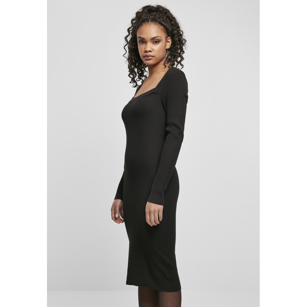 Urban Classics Damen Long Knit Dress - Langer Strickkleid Mit Eckausschnitt & Rippenstrick