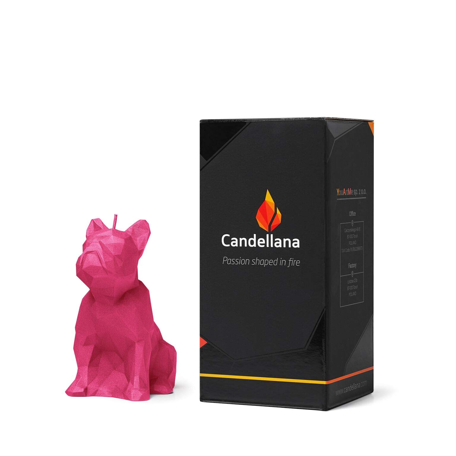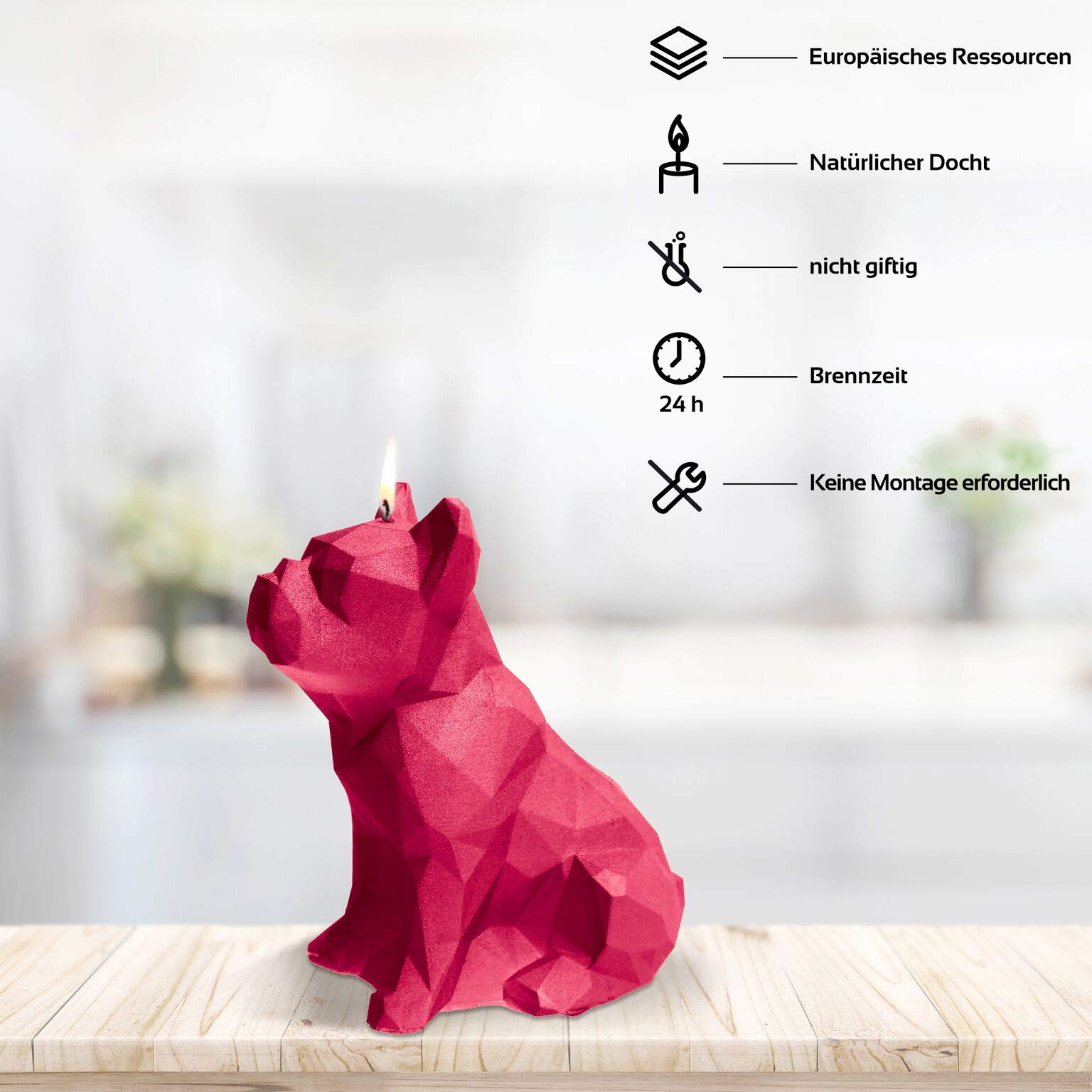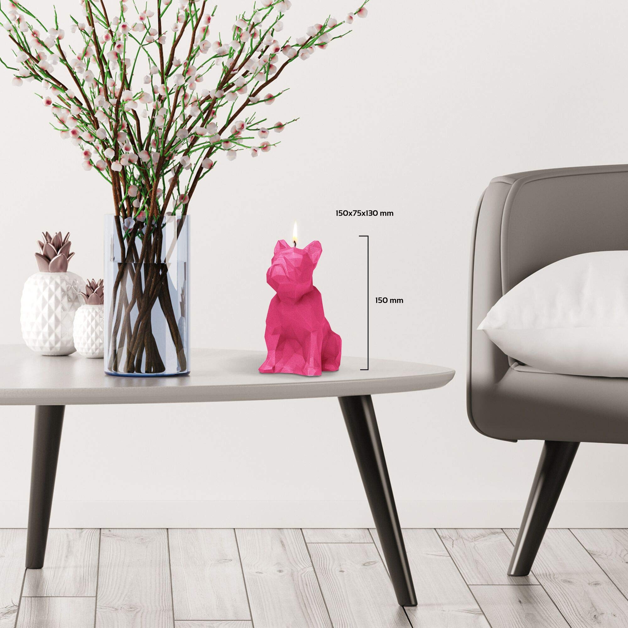 Wie niedlich ist denn diese Bulldog-Kerze? Das handgefertigte Stück von Candellana ist ein absoluter Hingucker in jedem Zimmer! Im modernen Low-Poly Design passt sie perfekt zu skandinavischen, futuristischen oder minimalistischen Einrichtungsstilen. Hergestellt in der EU mit größter Sorgfalt - du siehst wirklich die Liebe zum Detail. Die Kerze besteht aus unparfümiertem veganem Paraffin mit Baumwolldocht und ist damit auch für alle Vegetarier und Veganer bestens geeignet. Mit einer Brenndauer von 24 Stunden und den Maßen 120x75x150 mm in Dunkelrosa ist sie nicht nur dekorativ, sondern auch praktisch. Ein wunderbares Geschenk für Weihnachten, Geburtstage oder einfach so - für alle Hundeliebhaber und Design-Fans. Sie bringt nicht nur Licht ins Dunkel, sondern auch eine Portion Good-Mood in deine vier Wände!