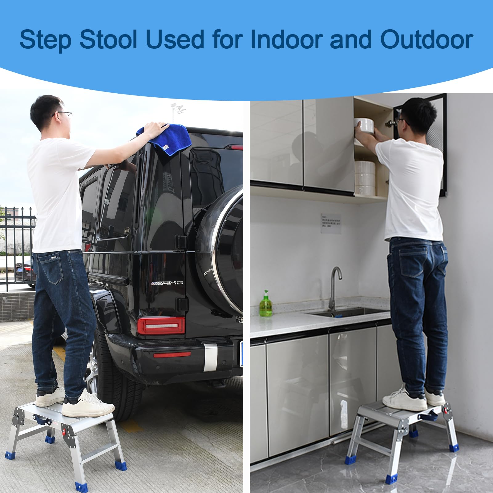 Immer die richtige Höhe parat! Dieser Loyoda Tritthocker aus robustem Aluminium trägt bis zu 200 kg und lässt sich mit einem Handgriff zusammenklappen. Perfekt für alle, die mal etwas höher rankommen müssen - ob beim Streichen, Regale einräumen oder Fensterputzen. Die vier Beine sind unabhängig voneinander von 30 bis 40 cm verstellbar, sodass du auch auf unebenen Böden stabil stehst. Und wenn du ihn nicht brauchst? Einfach zusammenklappen und platzsparend verstauen - passt sogar in den Kofferraum. Ohne Montage sofort einsatzbereit. Der ideale Helfer für Haushalt, Werkstatt oder Garten - sicher, stabil und super praktisch!
