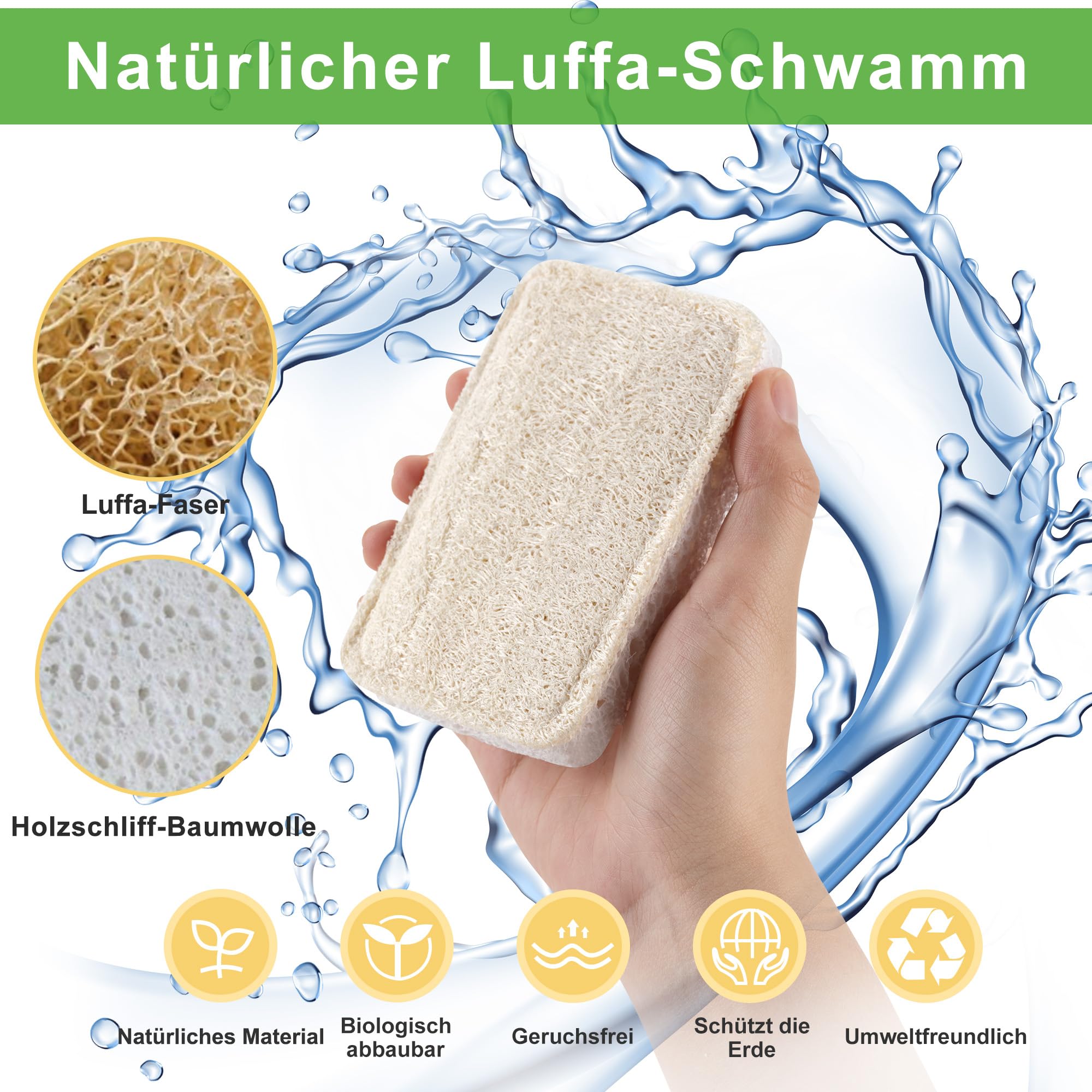 Endlich umweltfreundlich spülen! Diese Nogeqi Luffa Schwämme sind aus natürlicher Luffa und Baumwolle - komplett plastikfrei und biologisch abbaubar. Im praktischen 4er Pack hast du immer Ersatz parat. Die doppelseitige Struktur ist super vielseitig: eine Seite für grobe Verschmutzungen, die andere für empfindliche Oberflächen. Kratzen überhaupt nicht! Sie sind geruchsneutral, wiederverwendbar und super langlebig. Perfekt für Geschirr, Töpfe und Arbeitsflächen. Die Verpackung ist sogar recycelbar - rundum nachhaltig. Einfach ausspülen und trocknen lassen. Mach deine Küche grüner und hygienischer mit diesen natürlichen Schwämmen!