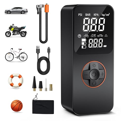 Moin Autofahrer und Radler! Diese elektrische Luftpumpe ist euer Retter in der Not! Mit einem starken 4000mAh Akku pumpt sie völlig kabellos - perfekt für unterwegs. Bis zu 150PSI Druck schaffen sogar Autoreifen problemlos. Das coole Doppel-Display zeigt euch den aktuellen Druck in Echtzeit an. Vier voreingestellte Modi (Auto, Motorrad, Fahrrad, Sport) machen das Aufpumpen zum Kinderspiel - einfach Modus wählen und los geht's! Der integrierte Überhitzungsschutz verhindert Schäden bei langem Gebrauch. Noch nicht genug? Die Pumpe hat auch eine LED-Notleuchte für dunkle Situationen und kann als Powerbank eure Handys aufladen! Kompakt, leicht und aus robustem Nylon - passt in jeden Kofferraum. Ob Reifen, Bälle oder Luftmatratzen - mit diesem Allrounder seid ihr für jede Aufblas-Situation gewappnet. Nie wieder mühsames Pumpen von Hand!