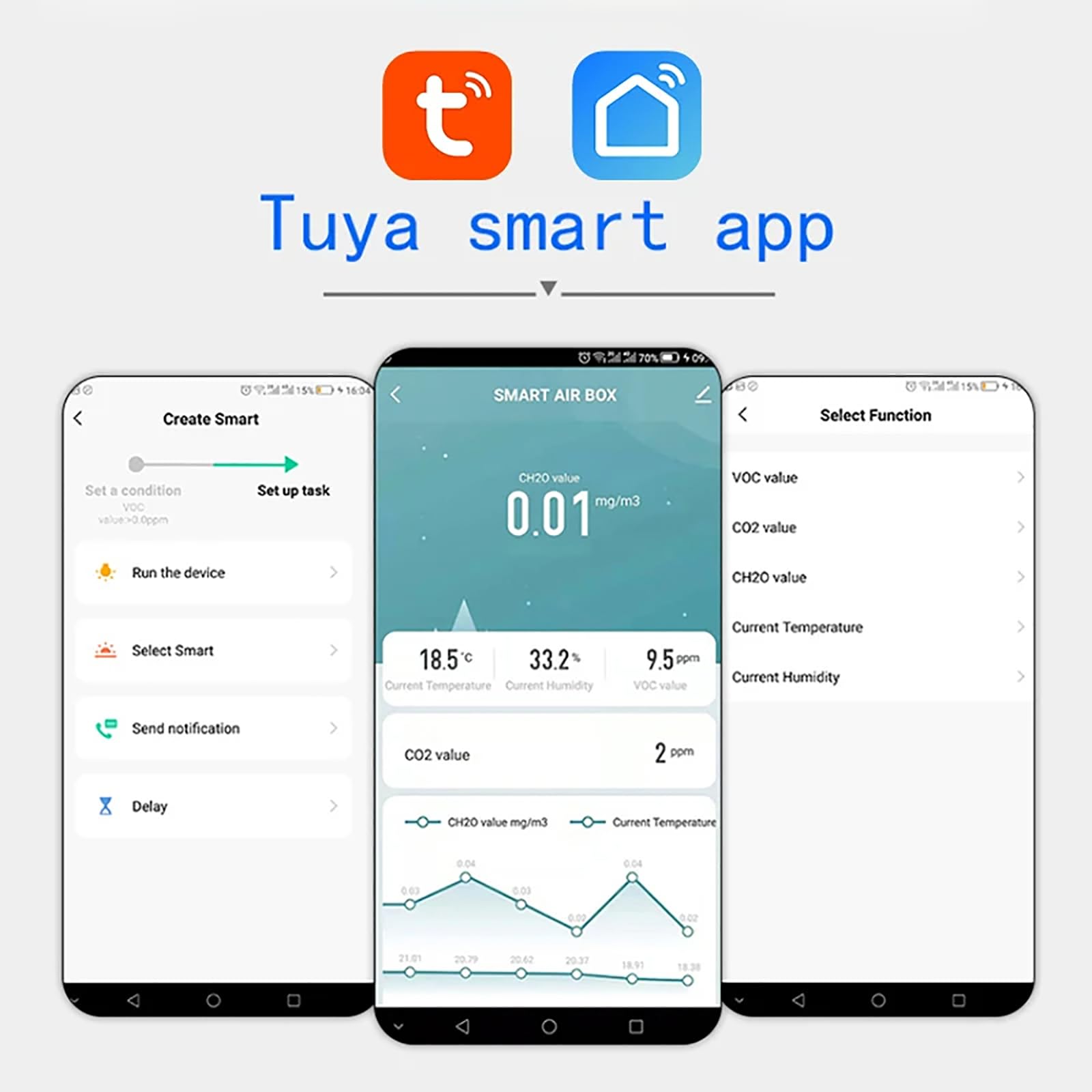 Dieser smarte Luftqualitätsmonitor checkt permanent, was du eigentlich atmen musst! Er misst CO2, Temperatur und Luftfeuchtigkeit in Echtzeit und zeigt alles auf dem Display an. Mit WiFi connectible kannst du die Daten auch übers Smartphone checken. Die 3000 mAh Lithium-Batterie hält ewig und lädt per Micro-USB. Super genau mit ner Abtastzeit von nur 1,5 Sekunden. Wenn die CO2-Werte zu hoch werden, warnt dich der Alarm - den kannst du aber auch ausschalten. Perfekt für Zuhause, Büro, Supermärkte oder sogar im Zelt beim Camping. So behältst du immer den Überblick über dein Raumklima und kannst bei Bedarf lüften!