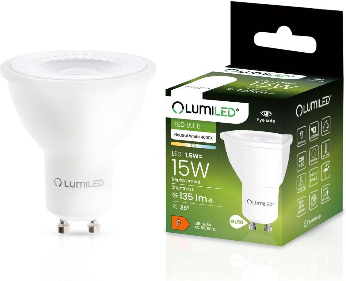 Boah, diese GU10 LED Lampen von Lumiled sind echt der Hammer! Mit nur 1.5W Verbrauch ersetzen sie 15W Halogen-Birnen - das sind über 90% Ersparnis bei den Stromkosten. Das warmweiße Licht mit 3000K ist super gemütlich und sorgt für eine richtig angenehme Atmosphäre in Wohnzimmer, Küche oder Flur. Kein Flackern, kein Aufwärmen - sofort volle Helligkeit! Der große Abstrahlwinkel von 120° bedeutet: Keine dunklen Ecken mehr, alles wird gleichmäßig ausgeleuchtet. Perfekt also für die Allgemeinbeleuchtung. Mit 135 Lumen sind sie hell genug für jeden Raum. Die Lebensdauer von 15.000 Stunden ist enorm - bei 3 Stunden Nutzung am Tag hält die Lampe über 13 Jahre! Das 10er Pack ist ideal wenn du mehrere Spots austauschen willst - ob in der Deckenbeleuchtung, im Flur oder im Büro. Einfach die alten Halogen-Birnen rausdrehen und diese hier rein - kein Trafo nötig. Der Farbwiedergabeindex von CRI 80 sorgt für natürliche, lebendige Farben. CE und RoHS zertifiziert - also sicher und umweltfreundlich. Ohne Quecksilber, UV- oder IR-Strahlung. Auch für Außenleuchten geeignet, wenn sie wettergeschützt sind. Die milchige Abdeckung reduziert den Blendeffekt - super angenehm für die Augen. Egal ob für zu Hause, Hotel oder Restaurant - diese Lampen machen einfach alles gemütlicher!