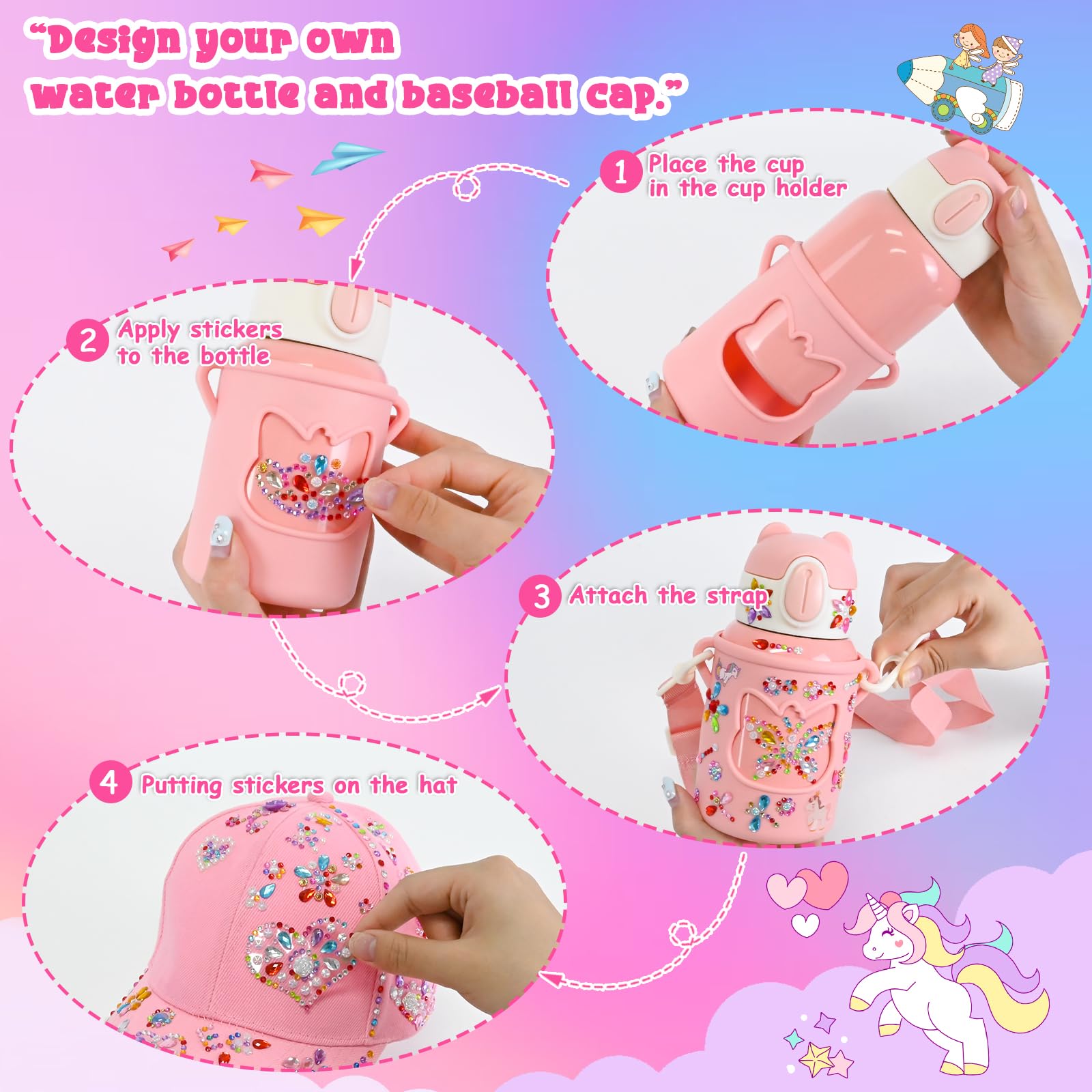 • CGBOOM DIY Bastelset Mädchen - Trinkflasche & Basecap Mit Aufklebern Zum Gestalten