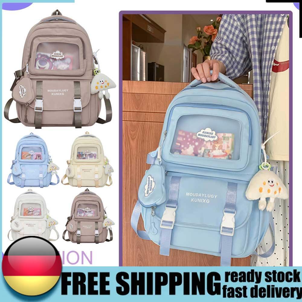 Wow, diese süßen Rucksäcke sind einfach perfekt für alle Mädchen, die stylisch zur Schule oder in die Stadt wollen! Das 3er Set bietet Abwechslung für jeden Tag - ob mit niedlichen Schleifen, süßen Kawaii-Mustern oder in tollen Pastellfarben. Aus robustem Nylon gefertigt, halten die Rucksäcke so einiges aus und sind dabei superleicht. Mit mehreren Fächern bleibt alles ordentlich verstaut: Bücher, Hefte, Handy und Snacks finden alle ihren Platz. Die verstellbaren Träger sorgen für einen bequemen Sitz, egal ob du zur Schule läufst oder mit Freundinnen unterwegs bist. Perfekt für Teenager, die Wert auf Style und Praktikabilität legen! Und das Beste: Du hast gleich drei verschiedene Looks zur Auswahl - so passt der Rucksack immer zu deiner Stimmung und deinem Outfit. Einfach unschlagbar für den Schulalltag oder Freizeitaktivitäten!