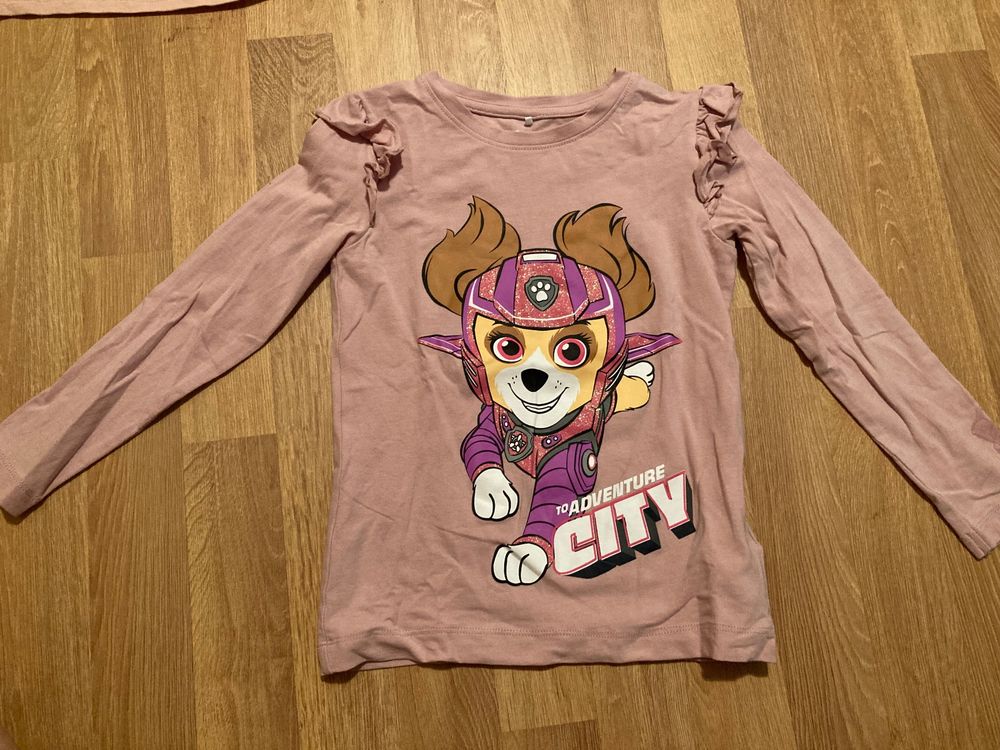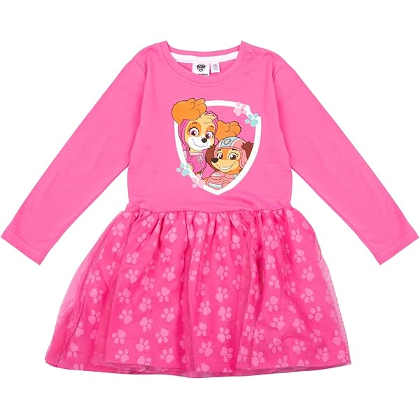 Für alle kleinen Paw Patrol Fans! Dieses offizielle Skye Langarmshirt begeistert jede kleine Heldin. Hergestellt aus 100% weicher Baumwolle fühlt sich das Shirt angenehm auf der Haut an und ist perfekt für empfindliche Kinderhaut. Das niedliche Design zeigt Skye in ihrem Pilotenkostüm umgeben von bunten Sternen und Pfotenabdrücken. Die silbernen Glitzerstreifen an den Ärmeln verleihen dem Shirt einen besonderen Glamour-Faktor. Im praktischen Regular Fit mit bequemem Rundhalsausschnitt und langen Ärmeln - ideal zum Toben und Spielen. Ob im Kindergarten, auf dem Spielplatz oder bei Geburtstagsfeiern - dieses Shirt ist immer die richtige Wahl! Besonders robust verarbeitet und farbecht - auch nach vielen Waschgängen sieht es noch wie neu aus. Einfache Pflege: Maschinenwäsche bei 40°C im Schonprogramm, schonend im Trockner trocknen. Nicht bleichen und beim Bügeln die Glitzerstreifen aussparen. Erhältlich in Navyblau und zartem Rosé in den Größen 98-128 (ca. 3-8 Jahre). Das perfekte Geschenk für kleine Paw Patrol Liebhaberinnen!