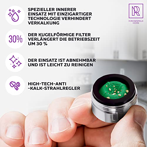 Perfektes Wassermanagement für deine Küche oder Bad! Dieser hochwertige Luftsprudler aus Messing mit Chrom-Finish passt auf die meisten Wasserhähne mit M24 Außengewinde (15/16 Zoll). Das besondere Feature: Zwei Durchflussarten durch Drehen des Silikonkopfes! Weicher Blasenstrom mit 1,8 GPM (6,8 LPM) spart Wasser und schont die Umwelt. Einfache Installation in Sekunden - alten Luftsprudler abschrauben, neuen aufschrauben, fertig! Der Silikonring am Kopf macht das Drehen rutschfest und leicht. Aus massivem Messing gefertigt - langlebig, nicht verformbar und feuchtigkeitsbeständig. Reduziert Spritzwasser und sorgt für ein angenehmes Strahlbild. Bevor du bestellst, prüfe die Gewindegröße deines Wasserhahns! Mach deinen Wasserhahn effizienter und umweltfreundlicher!