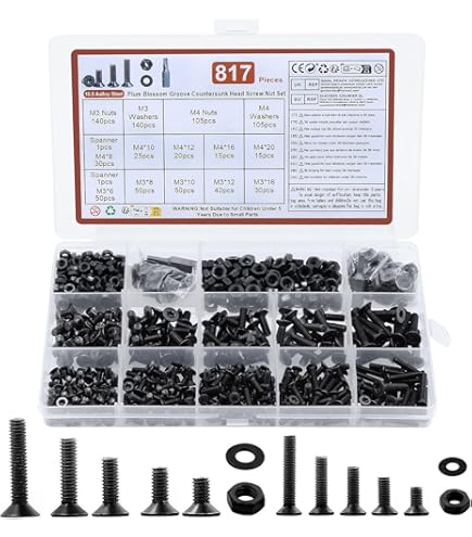 Das ultimative Schrauben-Set für jede Werkstatt! Enthalten sind satte 1500 Teile in den Größen M3, M4, M5 und M6. Das Set beinhaltet Senkkopfschrauben mit Innensechskant in verschiedenen Längen (von 8mm bis 20mm), passende Muttern und Unterlegscheiben. Alles aus robustem Kohlenstoffstahl in schwarzer Ausführung. Die versenkten Köpfe sorgen für eine glatte Oberfläche ohne Stolperfallen. Perfekt für Heimwerker-Projekte, Modellbau, Möbelmontage oder Reparaturen. Von M3x8mm (50 Stück) bis M6x20mm (15 Stück) ist für jede Anwendung die richtige Größe dabei. Die Innensechskant-Antriebe verhindern ein Abrutschen und ermöglichen hohe Drehmomente. Organisiere deine Schrauben-Sammlung und hab immer die passenden Teile griffbereit. Ein unverzichtbares Set für jeden, der gerne bastelt und repariert!