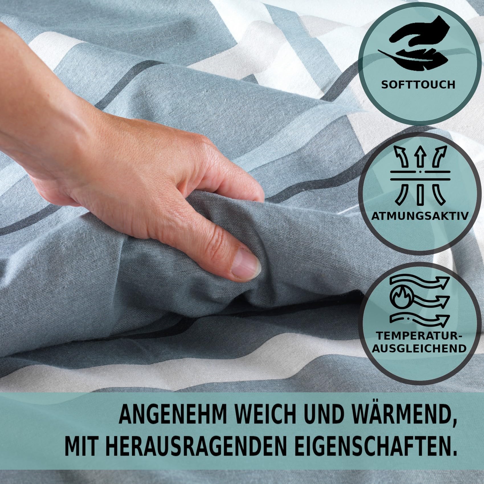 Boah, diese MALIKA Biber-Bettwäsche ist einfach nur mega kuschelig! Das 2-teilige Set mit Deckenbezug 135x200 cm und Kissenbezug 80x80 cm fühlt sich an wie in einer warmen Umarmung. Aus 100% Baumwolle-Biber ist sie super weich und hautfreundlich. Das Beste: Sie ist bügelfrei und pflegeleicht - einfach bei 60° waschen und sogar im Trockner trocknen. Mit der Öko-Tex 100 Zertifizierung kannst du sicher sein, dass keine Schadstoffe drin sind. Perfekt für kalte Wintertage, denn die Bettwäsche wärmt super, ist aber trotzdem atmungsaktiv. Du schwitzt nicht und frierst nicht - einfach ideal für erholsamen Schlaf. Die feuchtigkeitsregulierende Eigenschaft sorgt für ein perfektes Schlafklima. Wenn du morgens schwer aus dem Bett kommst, liegt es vielleicht an dieser ultra-gemütlichen Bettwäsche! Einfach reinstrecken und wohlfühlen - dein neuer Lieblingsplatz im Winter!
