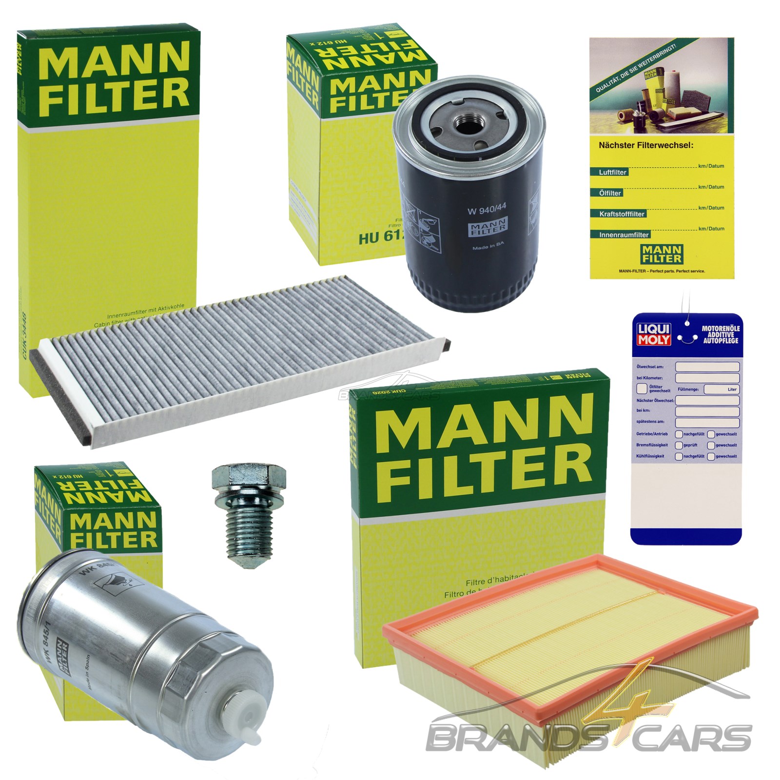 Service-Termin steht an? Dieses MANN-FILTER Inspektionspaket macht's dir leicht! Alles in einem Set: Ölfilter, Luftfilter, Ölablassschraube mit Dichtung und sogar ein Ölwechsel-Anhänger. Perfekt für verschiedene Audi und VW Modelle - bitte vorher Kompatibilität prüfen! Der Ölfilter hat 76 mm Außendurchmesser, 123 mm Höhe und Gewinde 3/4-16 UNF. Der Luftfilter misst 279 mm Außendurchmesser und 62 mm Höhe. Die Ölablassschraube ist M14 x 1,50 mit 16 mm Länge. Alles von MANN-FILTER - Qualität, der du vertrauen kannst. Spart Zeit und Geld, weil du nicht jedes Teil einzeln kaufen musst. Einfach zur Werkstatt bringen oder selbst einbauen - je nachdem, wie du es preferierst. Macht den Service so viel unkomplizierter. Für alle, die ihr Auto gut in Schuss halten wollen. Einfach bestellen und den nächsten Service stressfrei durchziehen!