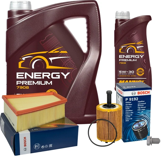 Alles für den Ölwechsel in einem Set! Enthält 6 Liter MANNOL Energy Premium 5W-30 (5L + 1L), API SN/CF - vollsynthetisches Leichtlauföl für Benzin- und Dieselmotoren. Dazu original SCT Ölfilter, Luftfilter und Innenraumfilter. Schützt optimal vor Verschleiß, auch bei langen Serviceintervallen bis 40.000 km. Ideal für Turbo-Motoren und Fahrzeuge mit Partikelfilter. Umweltfreundlich: Altöl kannst du bei uns zurückgeben! Einfach bestellen und den kompletten Service durchführen - dein Motor wird's dir danken mit langer Lebensdauer und guter Leistung!