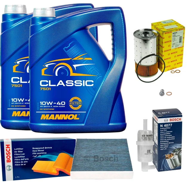 Dazu gibt's 5 Liter MANNOL Classic 10W-40 Motoröl in API SN/SM/CF Qualität. Das ist ein modernes HC-Synthese-Öl für Benziner, Diesel und sogar Erdgas-Motoren - mit und ohne Turbo!