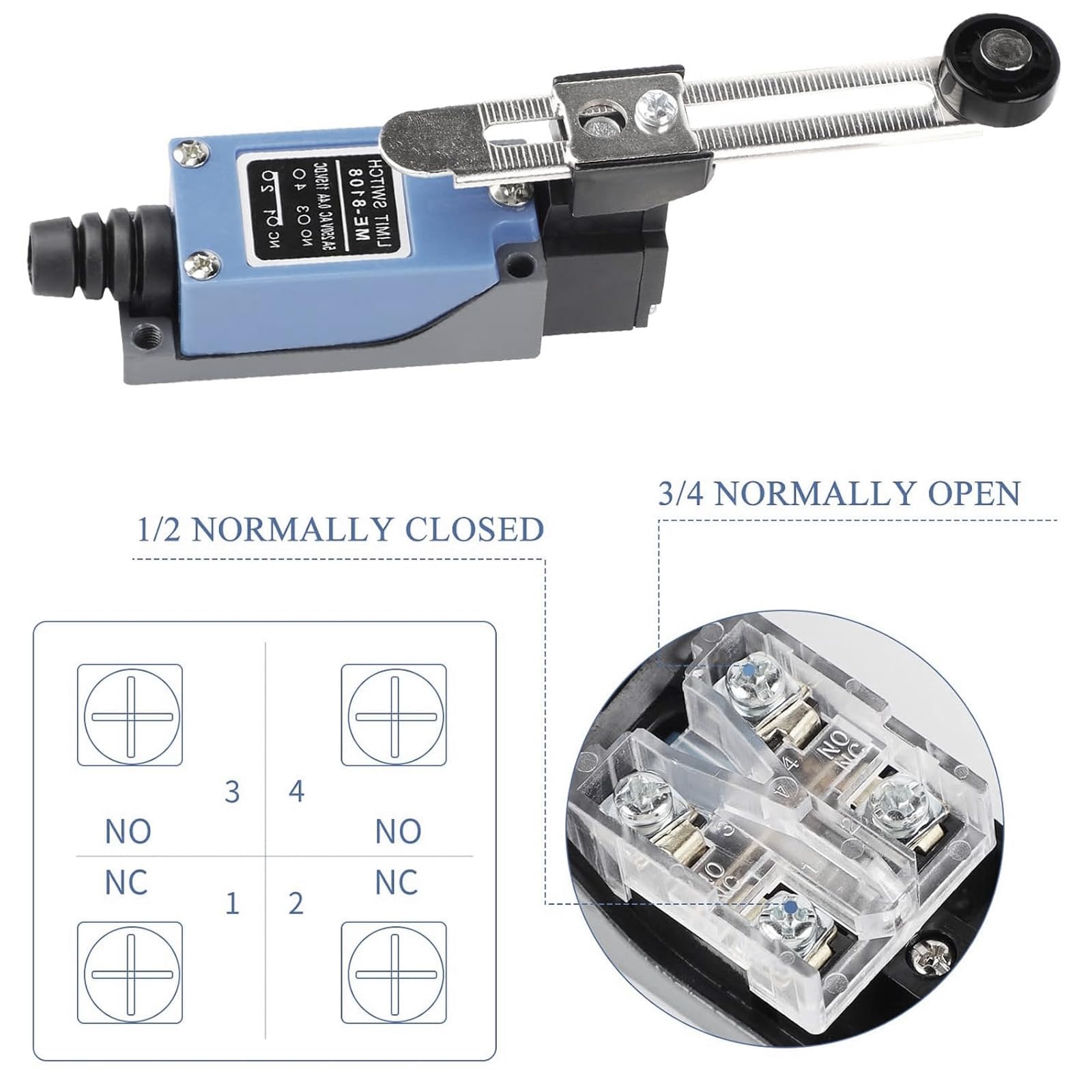 Profis aufgepasst! Diese 3 Endschalter ME-8108 sind echte Arbeitstiere. Wasserdicht und selbstrückstellend - perfekt für industrielle Anwendungen. Mit 250V/5A Wechselstrom Nennleistung. 1NC + 1NO Kontakte für flexible Schaltungen. Verstellbarer Rollenschwenkhebel mit 18mm Rolle. Gesamtgröße 129x29x48mm - kompakt aber leistungsstark. Ideal für Werkzeugmaschinen, Automatisierung oder Positioniersteuerung. Einfach zu installieren mit M5 Gewinde. Aus robusten Materialien - hält auch in rauer Umgebung. Hol dir dieses Set und statte deine Maschinen mit zuverlässiger Endlagen-Sicherung aus!