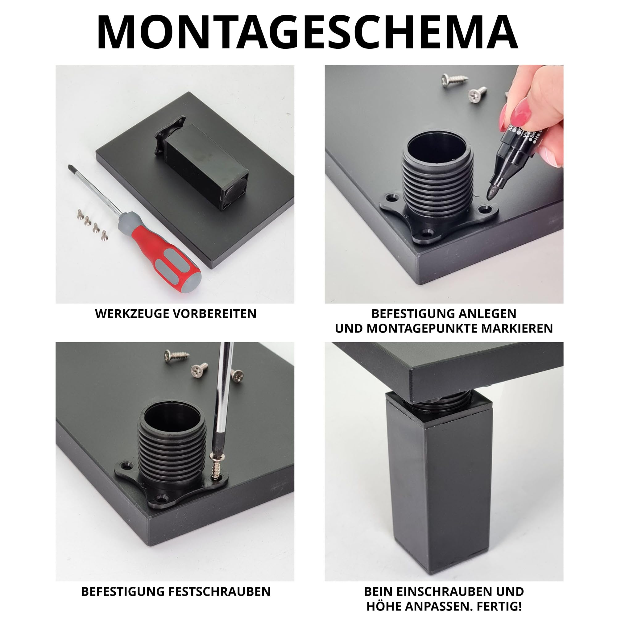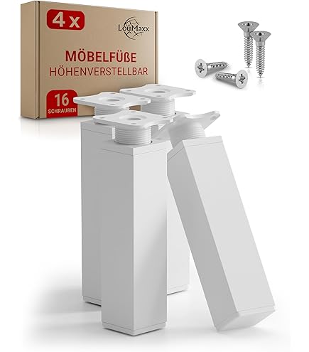Hey, wackelige Möbel? Diese STOLMET Möbelfüße helfen da weiter! 4er-Set in weiß, 60 mm hoch und bis zu 15 mm höhenverstellbar - perfekt um Schränke, Sofas oder Sessel gerade zu stellen. Aus stabilem Kunststoff, halten was aus. Maße: 40x40 mm für die Beine, 45x42 mm Basis. Mit 16 Schrauben (4x16 mm) dabei - alles was du brauchst. Einfach zu montieren, kein Werkzeug nötig. Besonders praktisch auf unebenem Boden - einfach die Höhe anpassen bis's steht wie ne Eins. Sieht sauber aus und deine Möbel wackeln nicht mehr. Auch super für Küchenmöbel oder im Schlafzimmer. Macht jeden Möbel wieder stabil und sieht dabei noch gut aus. Einfache Lösung für ein häufiges Problem - warum nicht gleich machen?