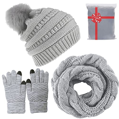 • MFAZ Mütze & Handschuhe Set - Winter Beanie Mit Bommel