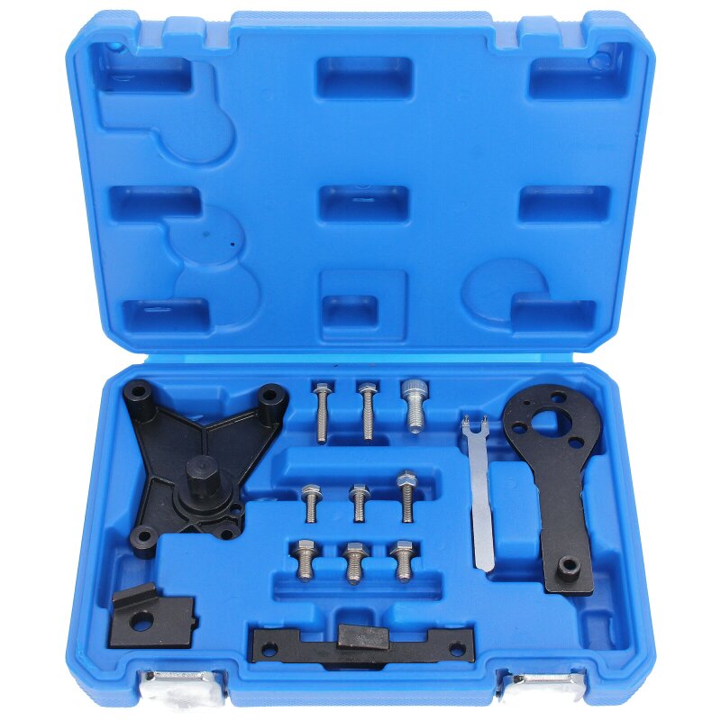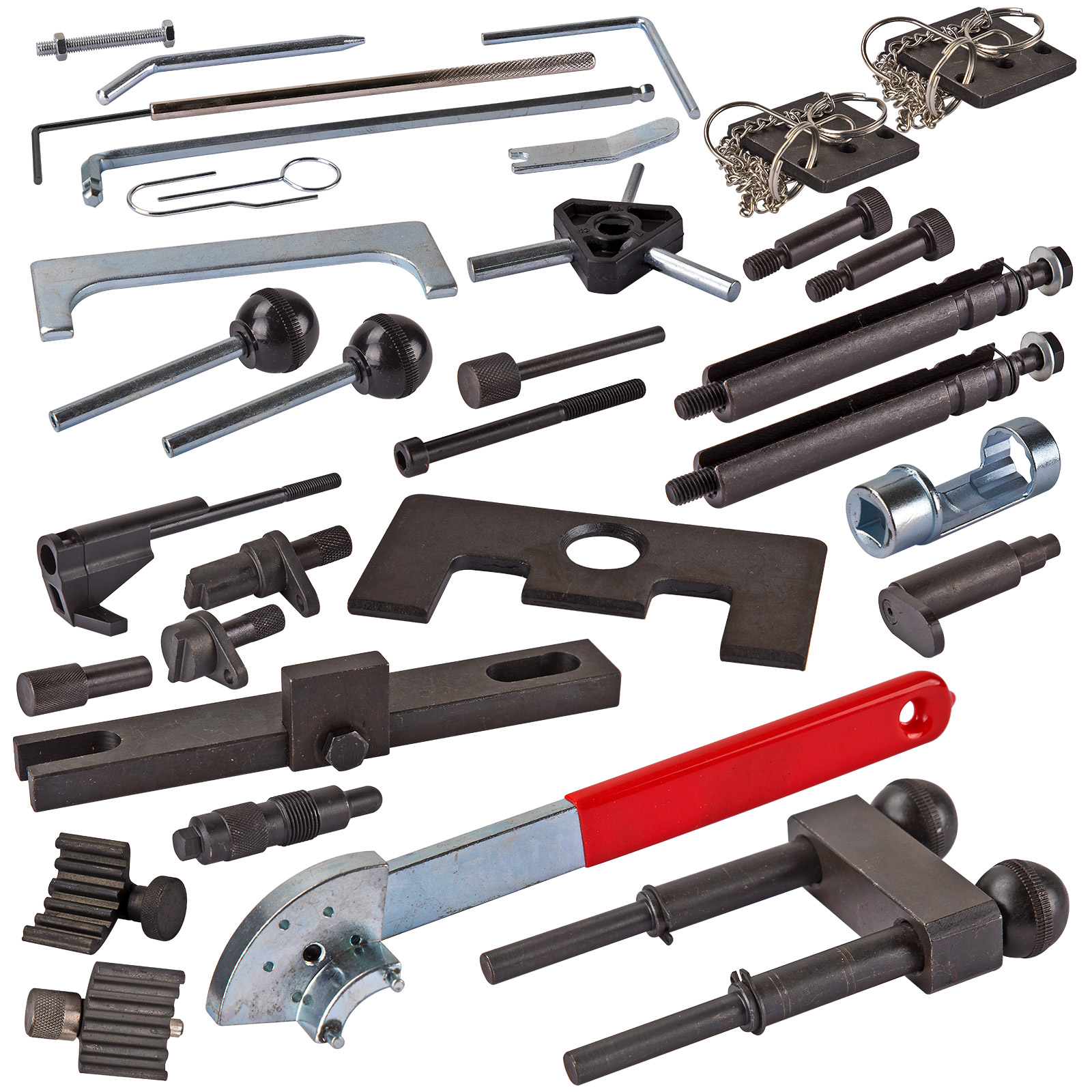 Professionelles Zahnriemen-Werkzeug für deine Garage! Dieses 7-teilige Set ist perfekt für Zahnriemenwechsel an VW, Audi, Seat und Skoda mit 1.2-2.0 TDI Motoren. Enthält alles was du brauchst: Kurbelschlösser, Nockenwellen-Stifte, Spannwerkzeuge. Aus hochwertiger Legierung, robust und langlebig. In praktischer Aufbewahrungsbox ordentlich verstaut. Damit stellst du Nockenwelle, Kurbelwelle und Einspritzpumpe genau ein - wichtig für eine präzise Motorsteuerung! Ob für Werkstatt oder Hobby-Schrauber - damit machst du jeden Zahnriemenwechsel zum Kinderspiel!