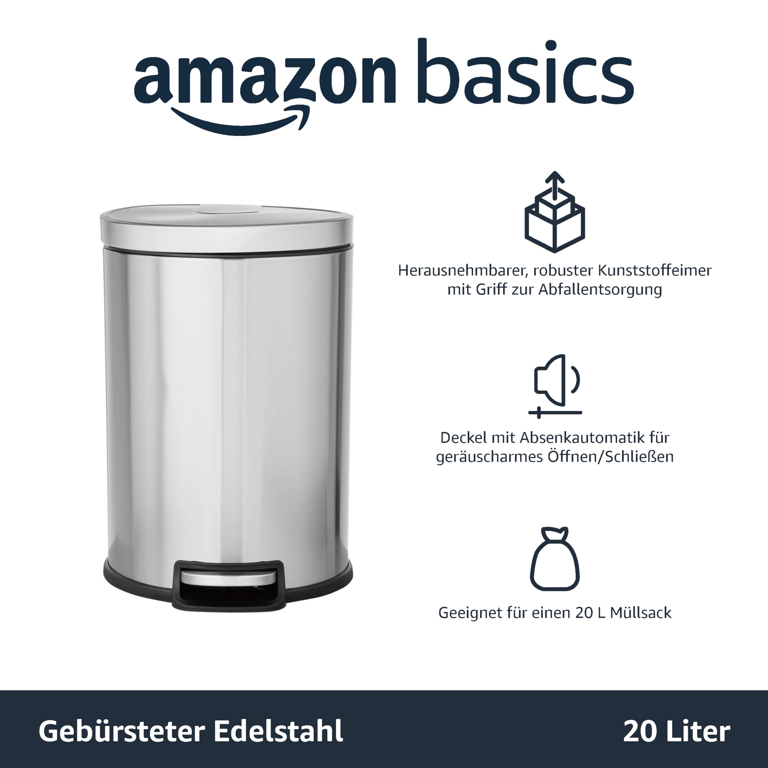 Dieser Edelstahl-Mülleimer von XGWML ist einfach praktisch! Mit 7 Liter Fassungsvermögen perfekt für Küche, Büro oder Bad. Das Pedal ist super - du musst nichts anfassen, einfach mit dem Fuß drauftreten. Der verdickte Pressring hält den Müllbeutel sicher fest - nichts rutscht runter. Wasserdichter Boden schützt deine Möbel vor Flecken. Aus hochwertigem Edelstahl - rostfrei und pflegeleicht. Das Anti-Fingerabdruck-Design sieht immer sauber aus. Kompakt mit 20x22 cm - passt auch in kleine Ecken. Perfekt für Haushalt, Schule oder Praxis. Der nahtlos geschweißte Boden ist stabil und kippt nicht um. Einfach ein hochwertiger Mülleimer der lange hält! Und das Design ist zeitlos - passt in jede Einrichtung. Einfach ein must-have für mehr Hygiene im Alltag!