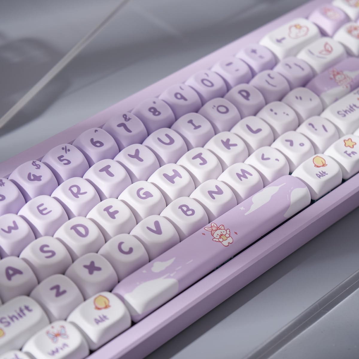 Alter, diese Tastenkappen sind ja mal richtig stylisch! Das Set hat 140 Tasten im bequemen MOA-Profil - also schön abgerundet für perfektes Tippgefühl. In warmem Rosa mit herbstlichen Motiven, einfach nur niedlich! Aus hochwertigem PBT-Material, das nicht so schnell glänzend wird und fettresistent ist. Durch den Thermo-Sublimationsdruck verblassen die Muster auch nach Jahren nicht. Passt auf die meisten mechanischen Tastaturen (60%, 75%, 87%, 100% Layouts). Wenn du unsicher bist, ob's zu deiner Tastatur passt, schick uns einfach ein Foto - wir helfen dir sofort! Macht aus deiner langweiligen Tastatur einen echten Hingucker!