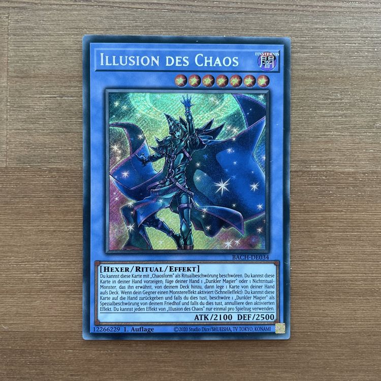 Alter, diese Illusion des Chaos Karte ist der absolute Hammer für jede Yu-Gi-Oh Sammlung! Secret Rare, 1. Auflage und auf Deutsch - was will man mehr? Aus dem 25th Anniversary Tin: Dueling Heroes Mega Pack, also richtig limited. In Near Mint Zustand und inklusive exklusivem RC-Fieldcenter für deine Turniere. Als Effekt Ritualmonster mit starken Chaos-Effekten einfach unschlagbar. Perfekt für Dunkler Magier Decks! Kommt sicher verpackt in knicksicherer Hülle an. Ein Muss für Sammler und kompetitive Spieler - schnell zuschlagen, bevor sie weg ist!