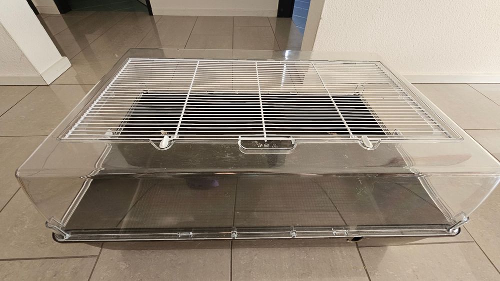 Der perfekte Wohnraum für deine Meerschweinchen! Dieser modulare Käfig von Ferplast bietet stolze 0,77m² Fläche - mehr Platz für glückliche Tiere. Maße: 107,5 x 72 x 50cm (LxBxH). Das coole Open-Top-Design ermöglicht super einfachen Zugang, und die Schiebetür mit Sicherheitsschloss verhindert Ausbrüche. Aus Metallgittern und recyceltem Kunststoff - nachhaltig und robust. Du kannst ihn später noch mit Erweiterungssets vergrößern! Reinigung? Kein Problem - einfach die kurze Seite anheben und herausziehen. Montage ohne Spezialwerkzeug in wenigen Minuten erledigt. Deine Meerschweinchen werden's dir danken!