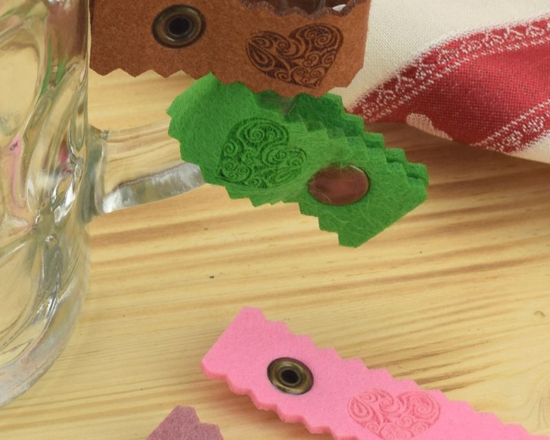 Auf dem Oktoberfest verlierst du nie wieder deine Maß! Dieses süße 'Trachtenherz'-Band markiert deinen Bierkrug. Aus Filz mit praktischem Druckknopf - einfach am Henkel befestigen und entfernen. Maße: 14,5 x 2,7 cm. In verschiedenen Farben erhältlich. Perfekt für Wiesn, Feste und Feiern. Prost!