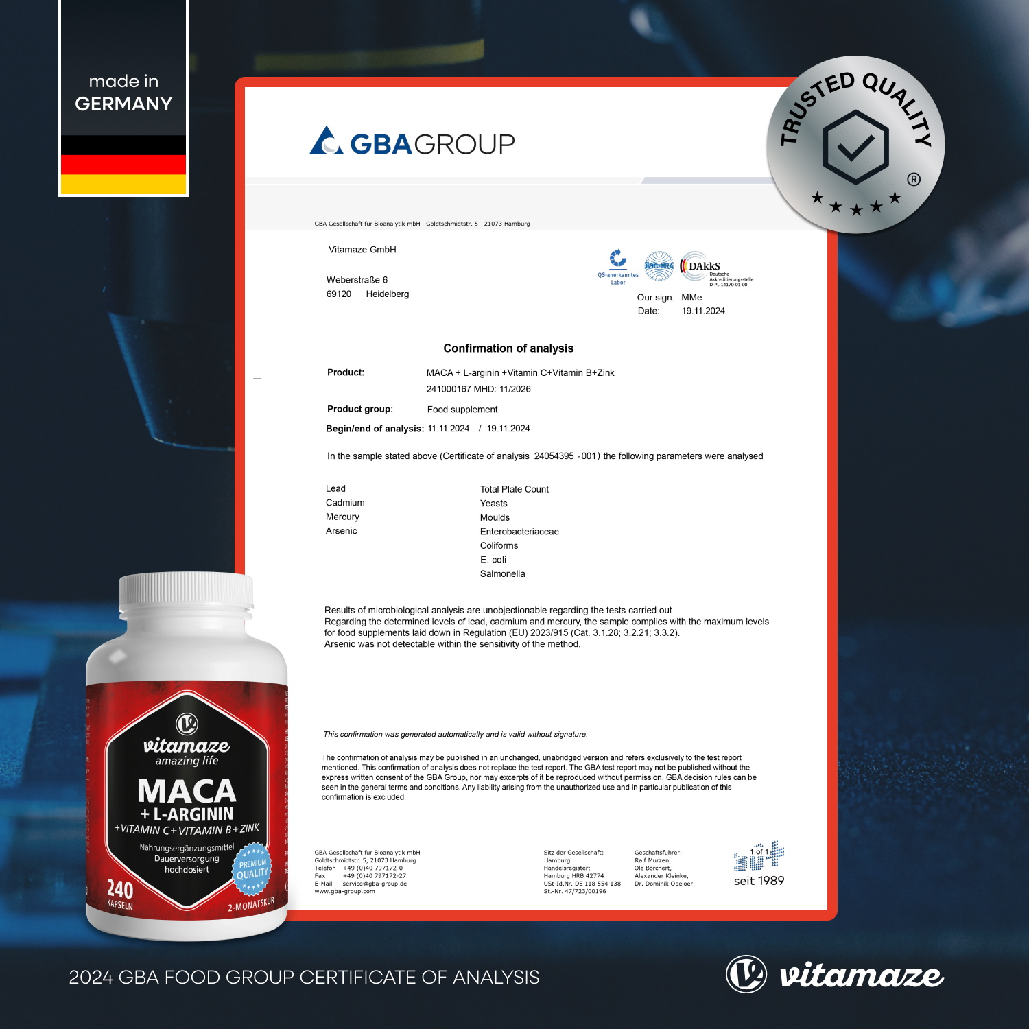 Natürliche Unterstützung für aktive Männer: MaxAlpha Kapseln mit Ginseng, Maca, L-Arginin, Zink und Selen! Pflanzliche Formel für mehr Energie und Ausdauer im Alltag. Ideal vor Training, fordernden Tagen oder besonderen Momenten. Eine Kapsel ca. 30 Minuten vor der Aktivität einnehmen. Vegan, glutenfrei, ohne künstliche Zusätze. Laborgeprüft für maximale Qualität und Sicherheit. Für Männer, die mehr Leistung bringen wollen. Einfach ausprobieren und den Unterschied spüren! Wichtig: Nicht für Kinder, Schwangere oder Stillende. Ergänzt eine ausgewogene Ernährung.