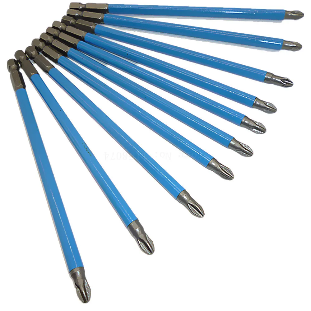 Nie wieder Schrauben verlieren! Dieses 9-teilige Magnet-Bitset ist der beste Freund jedes Heimwerkers. Die Bits sind an der Spize super magnetisch - die Schrauben bleiben einfach kleben, auch in schwierigen Ecken. Aus hochwertigem Kohlenstoffstahl gefertigt, halten sie selbst hohem Drehmoment von Schlagbohrern stand. Von 25mm bis 150mm ist für jede Aufgabe die richtige Länge dabei. Die rutschfesten Zähne geben dir perfekten Halt, selbst bei öligen Schraubenköpfen. Die verchromte Beschichtung macht sie rostfrei und super langlebig. Kompatibel mit so ziemlich allem: Akku-Schraubern, Schlagbohrmaschinen, Handbohrern - egal ob kabelgebunden oder kabellos. Perfekt für Möbelmontage, Elektronik-Reparaturen oder Auto-Wartung. Spar dir die Sucherei nach verlorenen Schrauben und mach deine DIY-Projekte viel entspannter. Mit diesem Set in Silber-Optik sieht deine Werkstatt nicht nur professioneller aus - du arbeitest auch wie ein Profi!