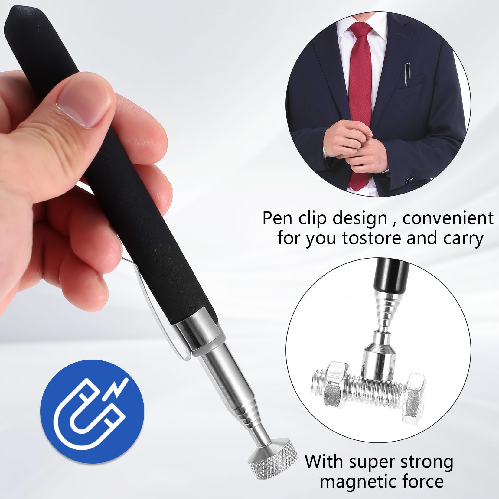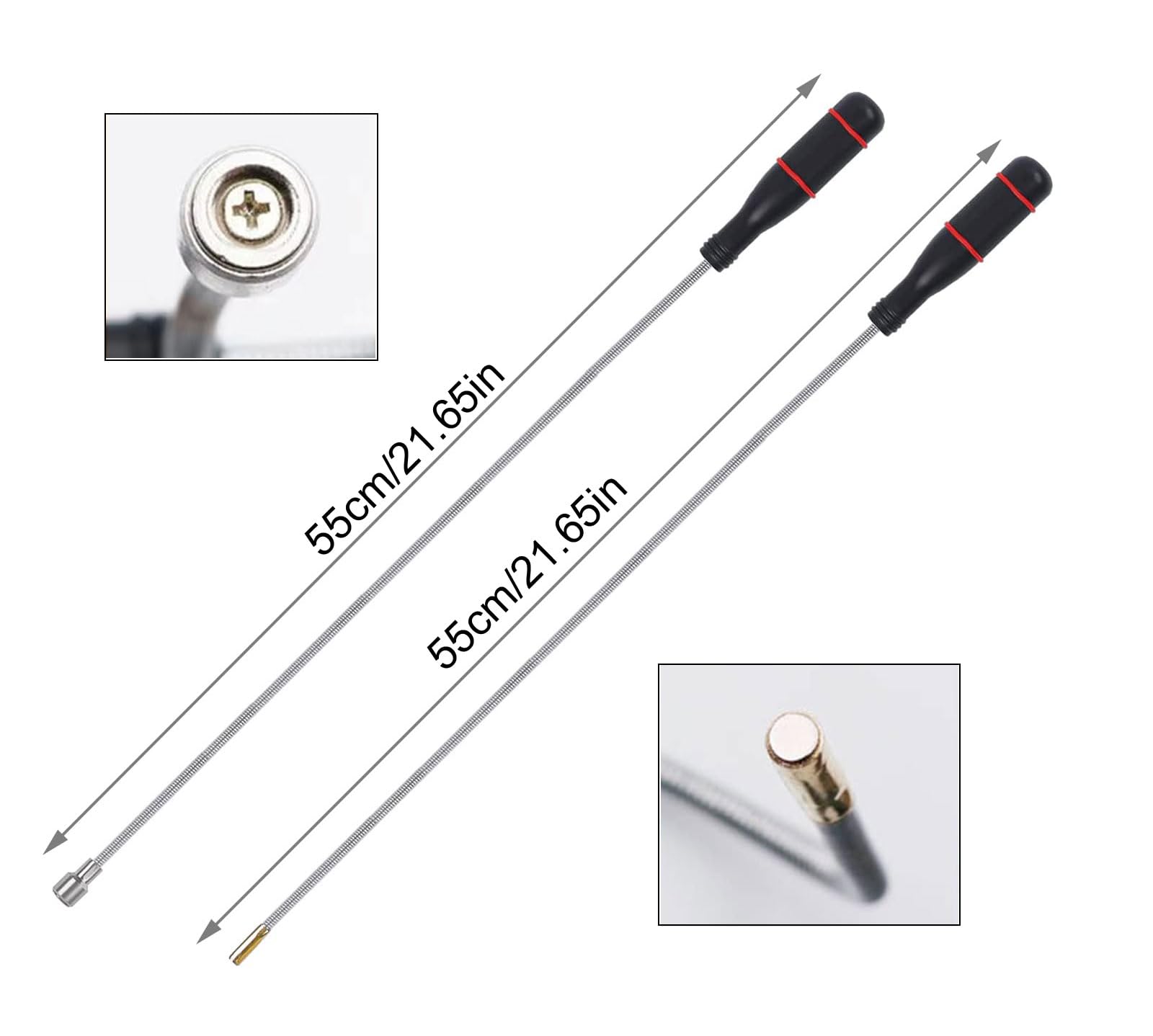 Nie wieder verlorene Schrauben! Dieses 3-teilige Set mit magnetischen Teleskopstäben ist super praktisch. Ein flexibler, biegsamer Greifer und zwei ausziehbare Stäbe mit verschiedenen Magnetköpfen. Bis zu 55 cm lang, mit rutschfesten Gummi-Griffen. Perfekt für schwer erreichbare Stellen im Motorraum oder bei Reparaturen. Hebt Muttern, Bolzen, Schrauben und andere Metallteile sicher an. Klein und leicht - passt in jede Werkzeugtasche. Ein Must-Have für jede Werkstatt!