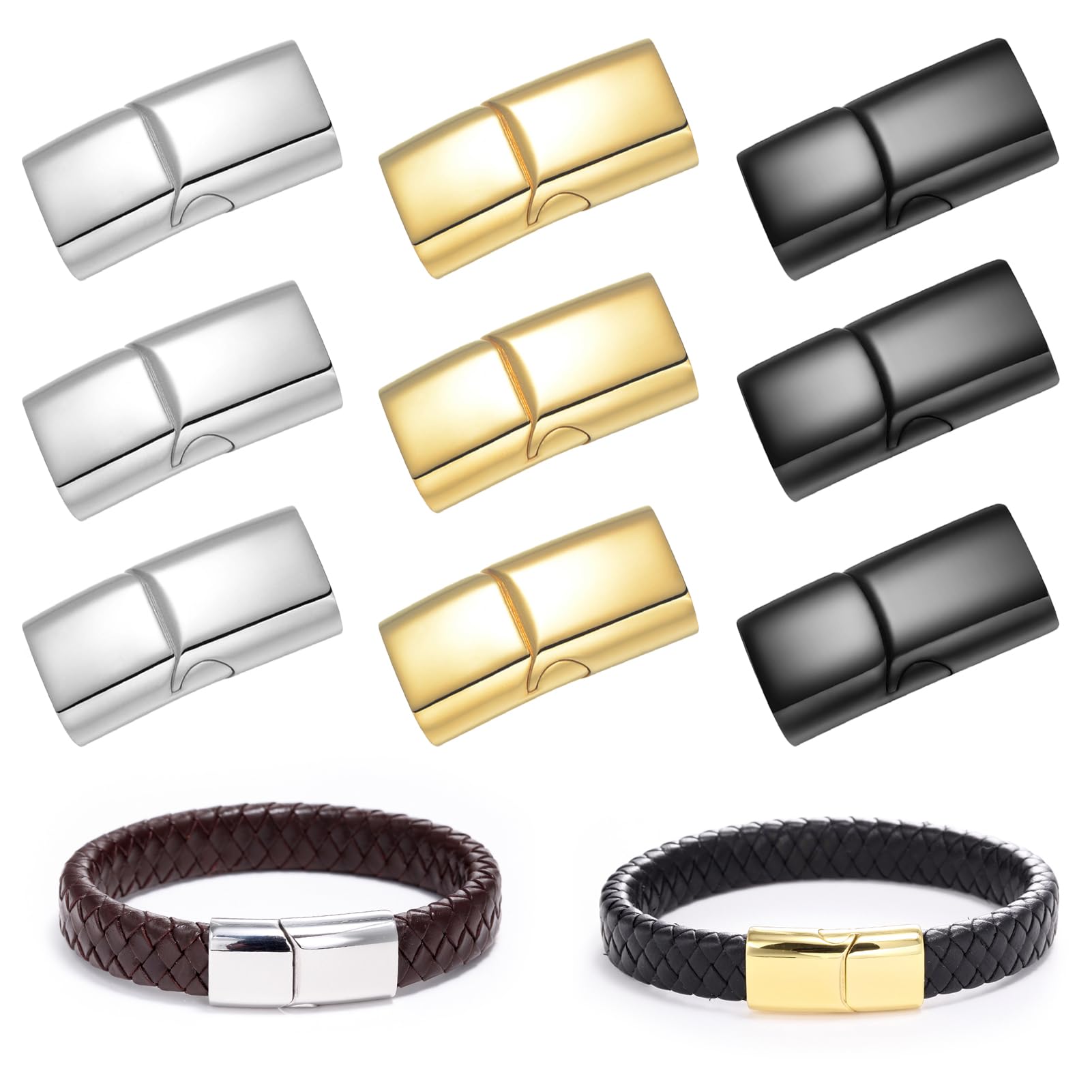Hey du kreative Seele! Diese 8 Magnetverschlüsse sind genau das Richtige für deine Schmuck-Projekte. Aus hochwertiger Zinklegierung gefertigt - rostfrei, hautfreundlich und mega langlebig. Die starken Magnete halten super fest zusammen, sodass du dir keine Sorgen machen musst, dass dein Schmuck verloren geht. Mit der Öffnungsgröße von 12x6mm passen sie perfekt für Lederarmbänder, Lederseile oder andere Bänder. Einfach zu montieren - einfach das Bandende in die Schnalle stecken, mit Kleber fixieren und trocknen lassen. Keine komplizierten Werkzeuge nötig! Das schlichte schwarze Design sieht edel aus und passt zu vielen Schmuckstilen. Perfekt für Halsketten, Armbänder oder andere Accessoires. Super als Geschenk für bastelbegeisterte Freunde oder für deine eigenen Kreationen. Einfach praktisch und vielseitig einsetzbar!