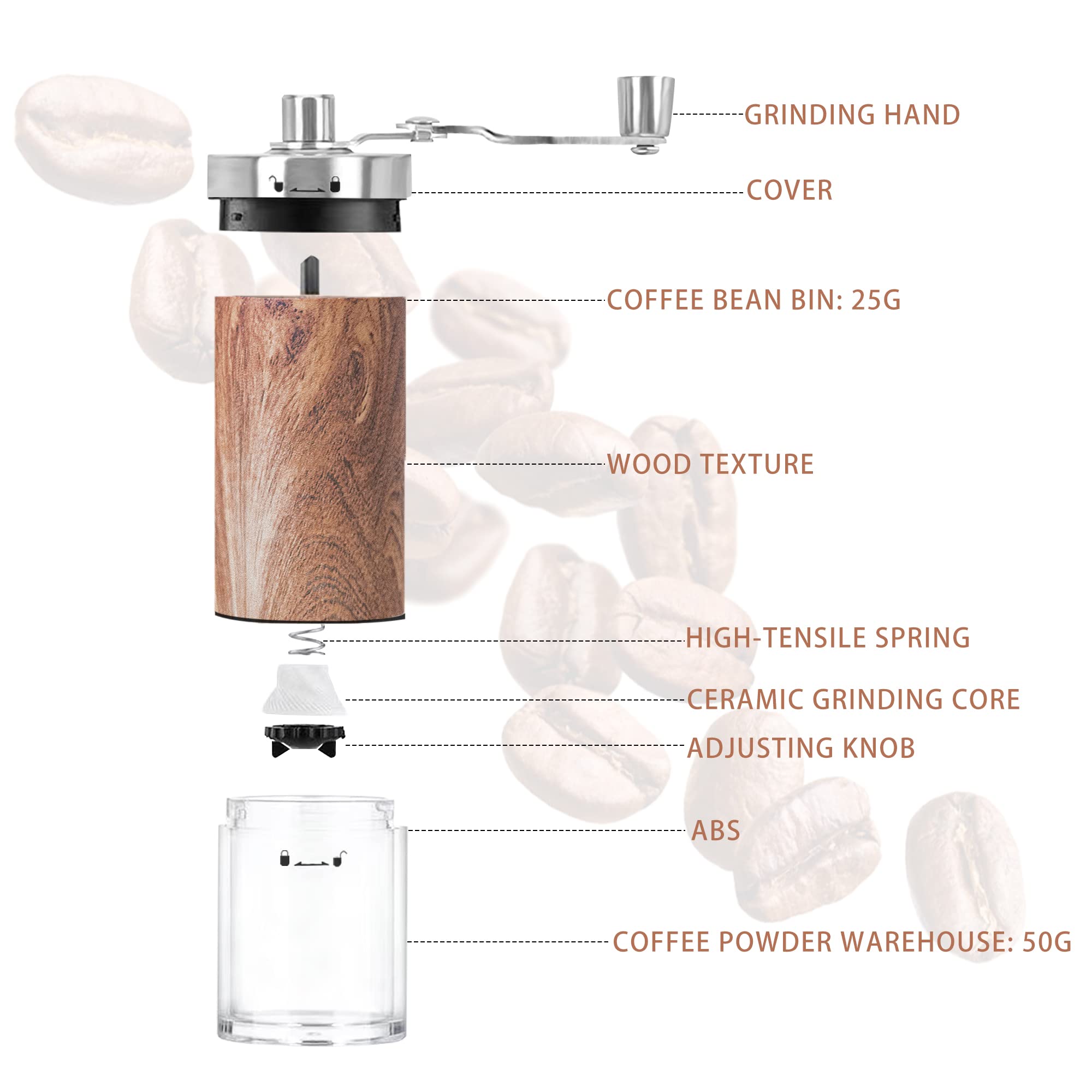 Kaffee-Liebhaber aufgepasst! Diese manuelle Kaffeemühle bringt das volle Aroma in deine Tasse - ganz ohne Strom. Das hochwertige Keramik-Mahlwerk zerkleinert die Bohnen gleichmäßig und schonend, ohne dass sie sich erhitzen. So bleiben die feinen Öle und Aromen erhalten, und dein Kaffee schmeckt einfach intensiver. Du bestimmst den Mahlgrad selbst - von fein für Espresso bis grob für French Press. Einfach an der Oberseite drehen, und schon passt sich die Mühle deinen Vorlieben an. Der ergonomische Holzgriff liegt super in der Hand, und der Edelstahlbehälter fasst eine volle Portion Bohnen. Perfekt für Zuhause, aber auch ideal für Camping, Reisen oder Büro - wo immer du frischen Kaffee genießen willst. Übrigens: Sie mahlt nicht nur Kaffee, sondern auch Gewürze wie Muskatnuss, Pfeffer oder Vanille. Ein echter Allrounder für deine Küche!