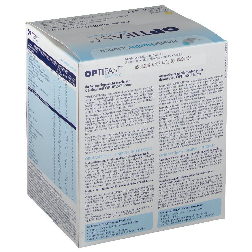 Optifast Home in cremiger Vanille-Geschmack unterstützt dich bei deinem Gewichtsmanagement! Jede Packung enthält 8 praktische Sachets à 55g. Reich an Vitaminen und Mineralstoffen - versorgt deinen Körper mit allen wichtigen Nährstoffen. Einfach zubereitet: Inhalt mit 200ml kaltem Wasser mixen oder im Shaker schütteln. Mit Magermilchpulver, Milcheiweiß und wertvollem Inulin. Enthält Vitamin C, E, Eisen, Zink und viele weitere Vitalstoffe. Perfekt als Mahlzeitenersatz im Rahmen eines Diätplans. Von Nestlé HealthCare entwickelt - Qualität, der du vertrauen kannst. Die cremige Vanille schmeckt lecker und stillt das Verlangen nach Süßem. Ideal für unterwegs oder als schnelle Mahlzeit zu Hause. Unterstützt deine Gesundheitsziele mit wissenschaftlich entwickelter Formel!