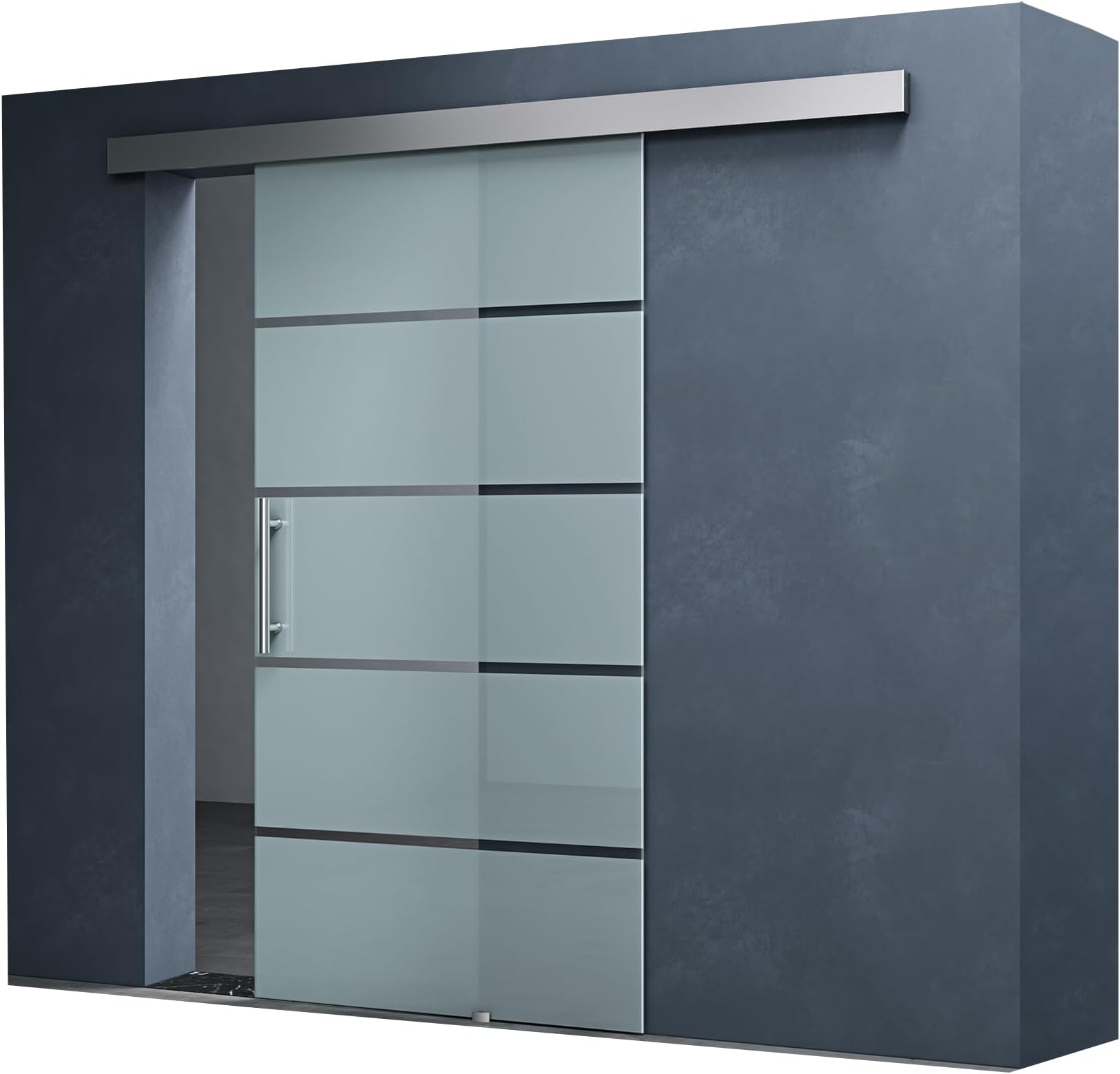 Raumwunder gesucht? Diese elegante Glasschiebetür in 90x215cm mit 5 Milchglas-Streifen macht jeden Raum größer! Mit 8mm ESG-Sicherheitsglas, Aluminium-Schiene und Edelstahl-Griff. Einfache Wandmontage mit 25mm Abstand, inklusive Bodenführung. Der Soft-close-Mechanismus (optional) sorgt für sanftes Schließen. Modernes Design meets Funktionalität - hol dir jetzt mehr Platz und Licht in deine vier Wände!