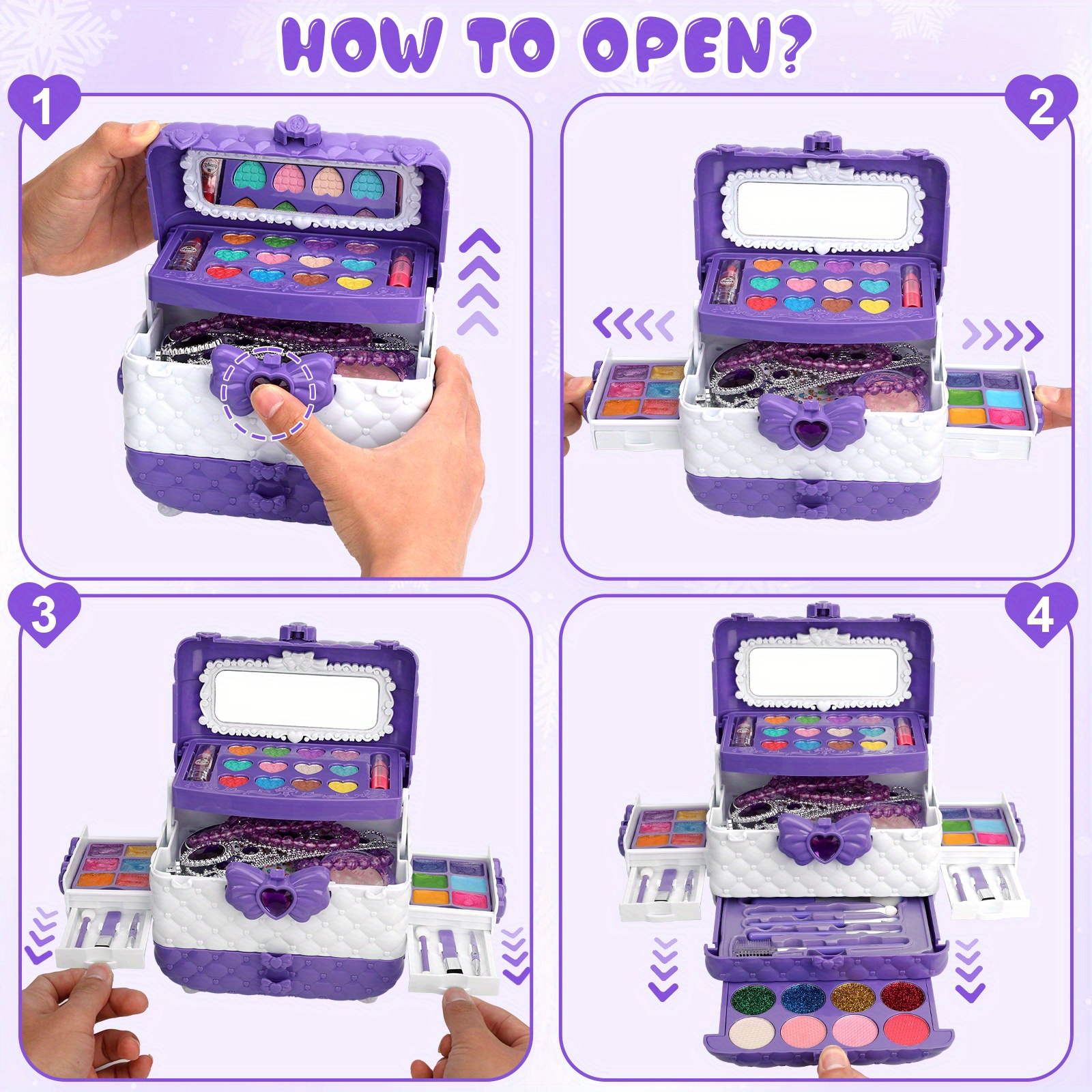 Deine kleine Prinzessin will auch mal schminken wie die Großen? Mit diesem 26-teiligen Flybay Make-up-Set kann sie das gefahrlos ausprobieren! Alles ist wasserlöslich und ungiftig - einfach mit warmem Wasser abwaschbar, ohne Flecken auf Kleidung oder Möbeln. Enthalten sind Lidschatten, Rouge, Lippenstifte, Nagellack, Pinsel und sogar ein süßer Kosmetikkoffer mit Spiegel. Perfekt für Rollenspiele und um Kreativität zu fördern. Keine Sorge - das ist alles speziell für Kinderhaut entwickelt und völlig unbedenklich. Ein super Geschenk für Mädchen von 4-10 Jahren zu Geburtstag, Weihnachten oder Halloween. Lass dein Kind träumen und kreativ sein - ohne dass deine teure Kosmetik darunter leiden muss!