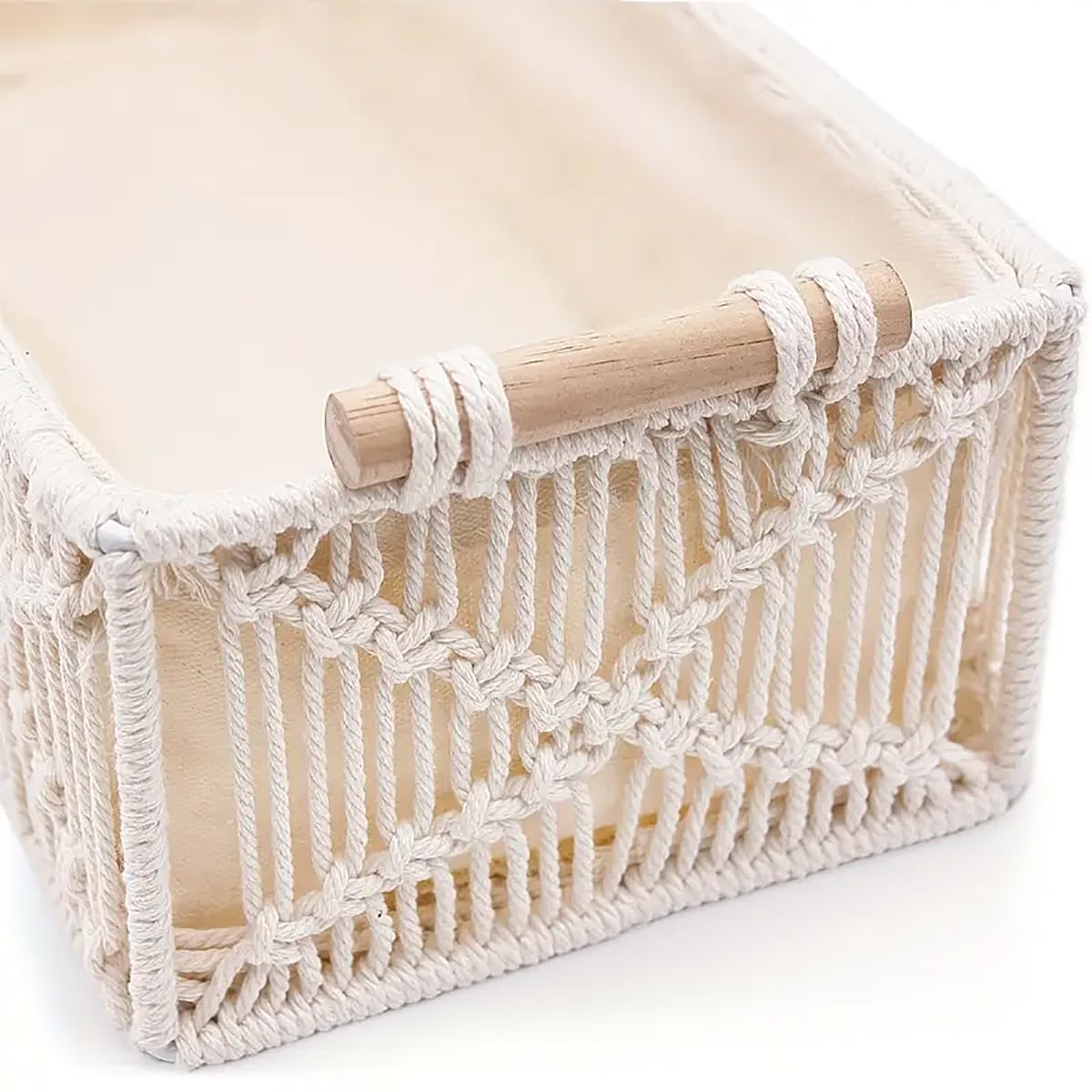 Diese süßen Sporgo Makramee-Körbe sind nicht nur superpraktisch, sondern auch ein echter Hingucker! Das 2-teilige Set kommt in verschiedenen Größen (35cm und 32cm lang), beide mit stabilen Holzgriffen. Handgeflochten aus hochwertiger Baumwolle in reinem Weiß, mit elegantem Spitzendesign. Der integrierte Drahtrahmen sorgt für Stabilität und verhindert Verformungen. Perfekt fürs Badezimmer (Handtücher, Kosmetik), Schlafzimmer (Accessoires, Schmuck), Wohnzimmer (Zeitschriften, Decken) oder Kinderzimmer (Spielzeug). Die natürliche Baumwolle ist hautfreundlich und kratzt nicht. Bringt boho-chic Flair in jede Ecke und hilft dabei, Ordnung zu halten - und das auf stylische Art! Einfach reinsortieren und sich über mehr Übersicht freuen.