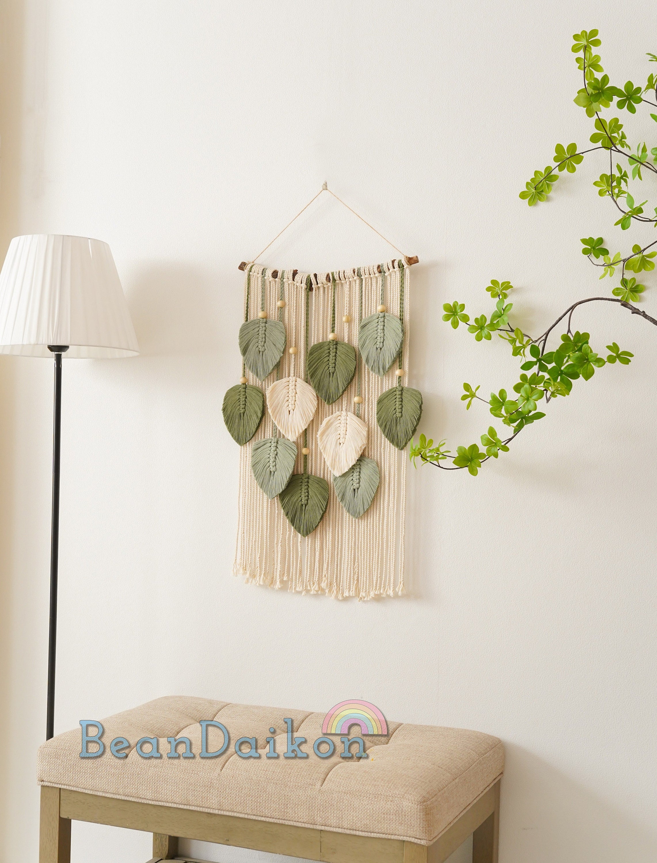 Der fertige Wandbehang im böhmischen Stil sieht in jedem Zimmer toll aus - ob im Wohnzimmer, Schlafzimmer oder Flur. Er verbreitet sofort eine gemütliche, vintage Atmosphäre. Die verschiedenen Farben und die Holzperlen geben dem Ganzen das gewisse Etwas.