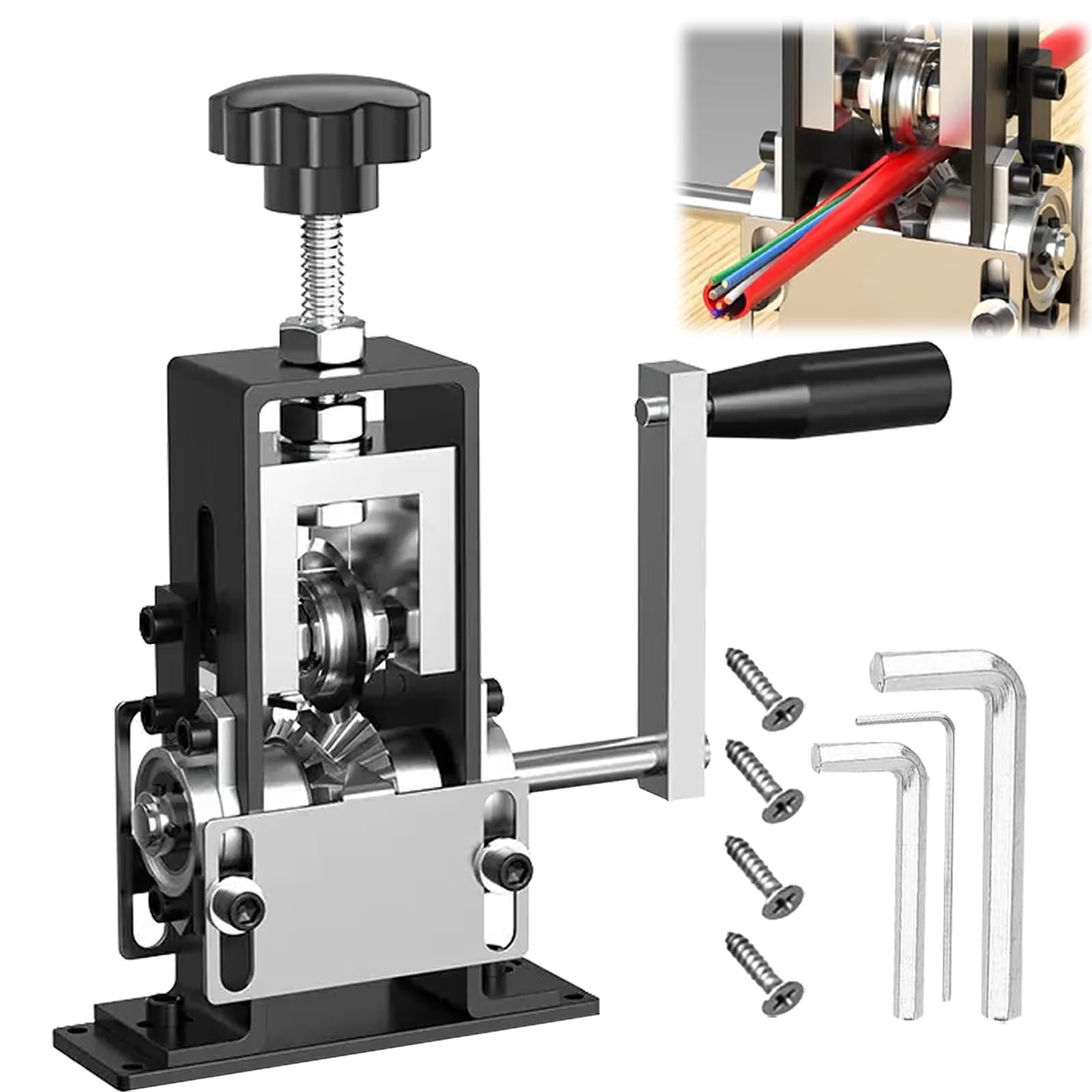 Kupferkabel recyclen war noch nie so einfach! Dieser manuelle Kabelabisolierer schafft Kabel von 1mm bis 25mm Durchmesser. Einfach Kabel einlegen, Handkurbel drehen und schon ist die Isolierung weg.