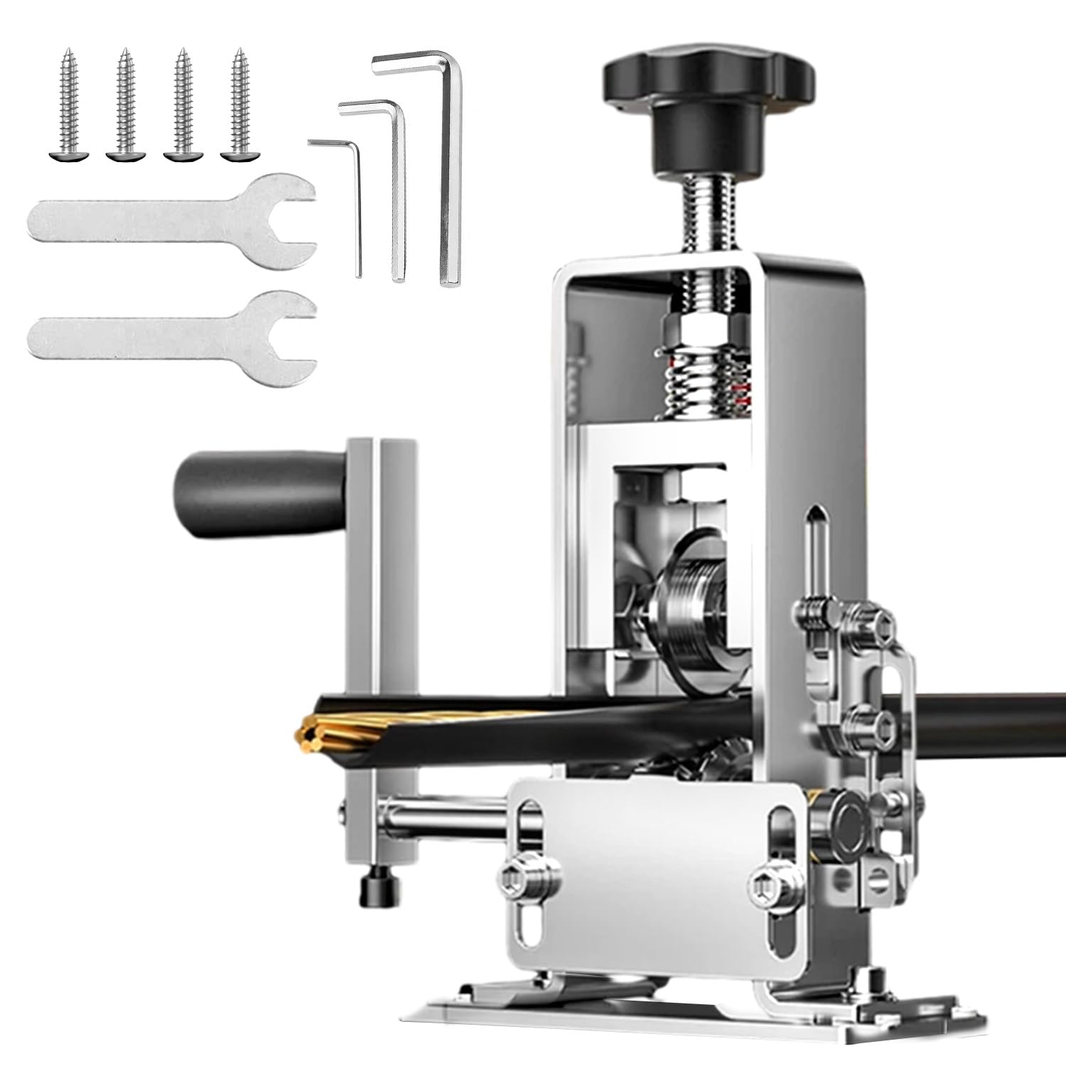Aus robustem Stahl gebaut, wiegt 1,5kg und steht stabil auf der Werkbank. Die Klinge aus rostfreiem Stahl ist langlebig und präzise. Du kannst sogar eine elektrische Bohrmaschine anschließen für noch schnelleres Arbeiten.