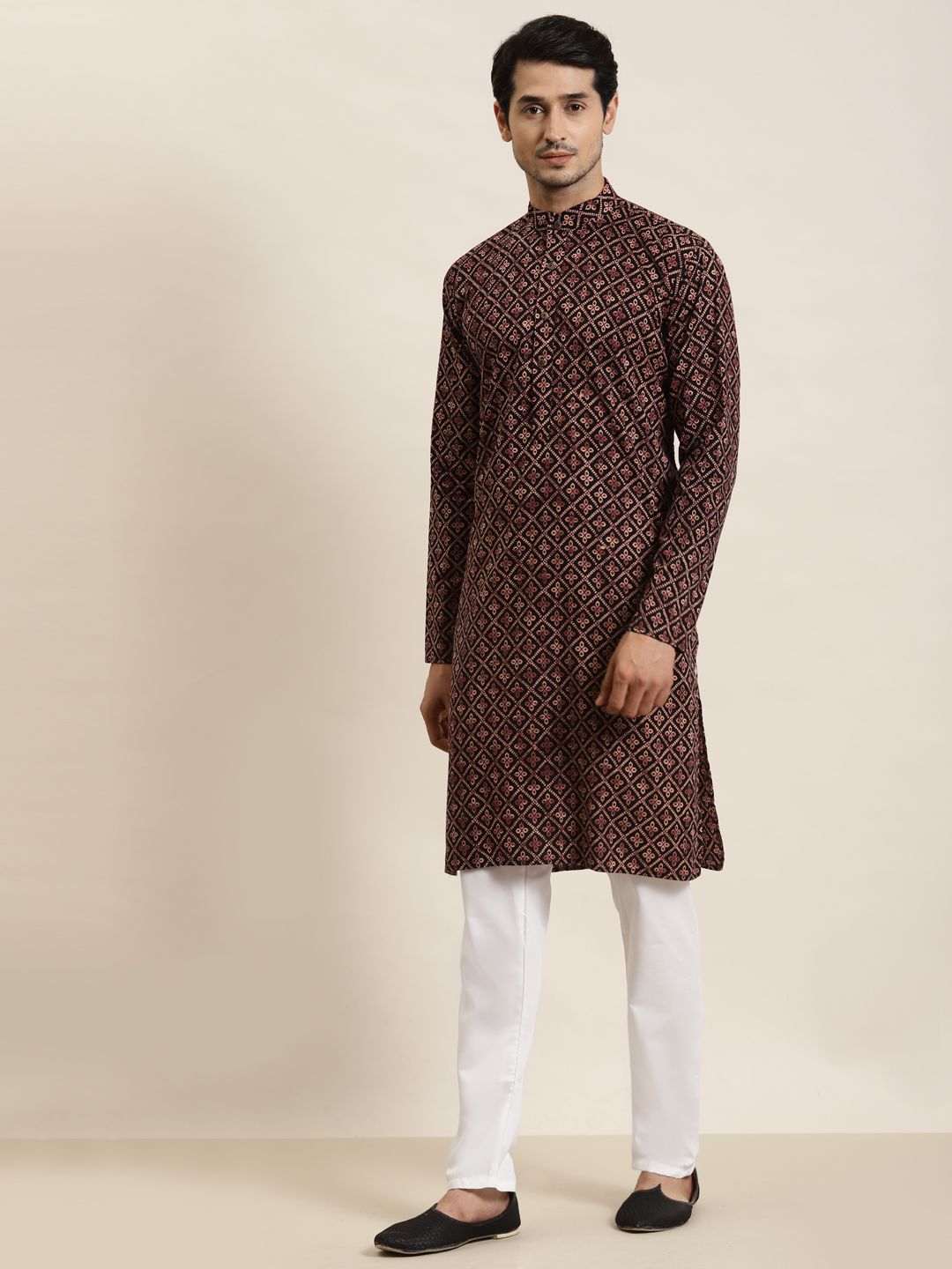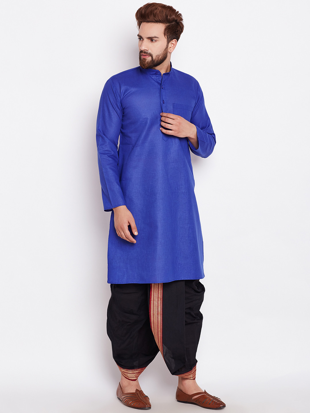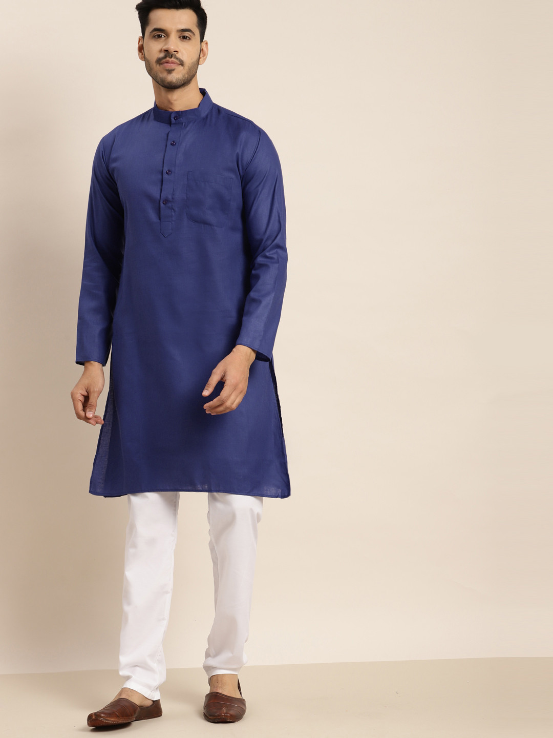 Tradition trifft Eleganz! Diese wunderschöne Kurta von SOJANYA bringt seit 1958 Qualität und Erschwinglichkeit zusammen. Aus feiner Seiden-Baumwoll-Mischung (80% Seide, 20% Baumwolle) in edlem Marineblau mit aufwendiger mehrfarbiger Stickerei. Mit klassischem Mandarin-Kragen und vollen Ärmeln - reguläre Passform für maximalen Komfort. Knielänge für perfekten Tragekomfort bei festlichen Anlässen. Perfekt für Galas, Hochzeiten oder besondere Feiern wo du glamourös auftreten willst. Die jahrzehntelange Erfahrung von SOJANYA garantiert herausragende Verarbeitungsqualität. Wichtig: Vor Bestellung die Brustgröße in der Größentabelle prüfen für die perfekte Passform. Verleihe deinem Kleiderschrank dieses zeitlose Stück traditioneller Handwerkskunst!