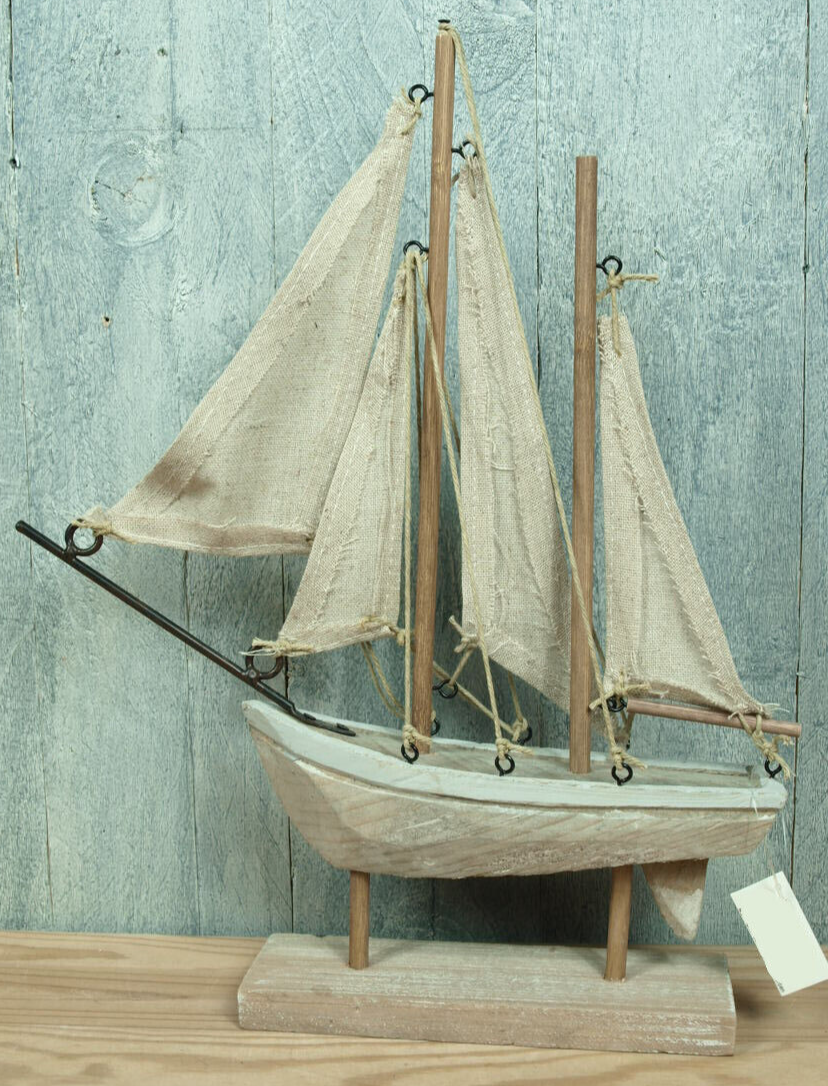 • Holz Segelschiff Deko - Maritimes Segelboot Mit Fischernetz & Muscheln