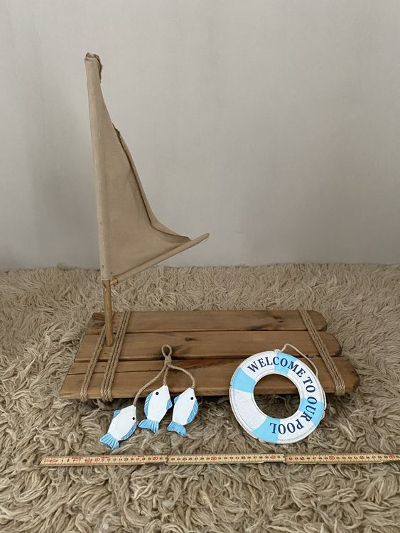 Wie niedlich ist denn dieses Holz-Segelschiff! Perfekt für alle die den maritimen Stil lieben. Mit Fischernetz, Anker, Muscheln und Seesternen dekoriert - sieht aus wie direkt vom Meer mitgebracht. Ca. 14cm hoch - also genau die richtige Größe für Regal, Schreibtisch oder Badezimmer.\\n\\nAus lackiertem Holzlaminat handgefertigt - jedes Stück ein Unikat! In Blau- und Weißtönen gehalten passt es zu vielen Einrichtungsstilen. Ob fürs eigene Zuhause oder als Geschenk für Seefahrer-Fans - diese Deko bringt sofort Urlaubsfeeling ins Haus.\\n\\nEs gibt 8 verschiedene Varianten zur Auswahl - jedes Schiff hat andere Dekoelemente. Einfach hinstellen und sich über die maritime Atmosphäre freuen. Besonders süß im Badezimmer oder als Tischdekoration beim Essen. Einfach ein charmantes Accessoire für mehr Meeres-Flair!