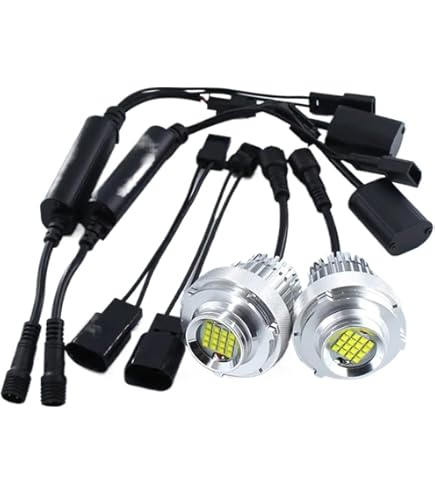 Verpasse deinem BMW den ultimativen Look mit diesen superhellen Angel Eyes LED-Lampen! Mit 6000K weißem Licht und je 5W Leistung pro Lampe (insgesamt 10W) sorgen sie für eine beeindruckende Beleuchtung. Das Aluminiumgehäuse gewährleistet optimale Wärmeableitung und eine Lebensdauer von über 50.000 Stunden. Perfekt für verschiedene BMW-Modelle: E39 (525i, 530i, 540i, M5), E60/E61 (525i, 525xi, 530i, 530xi, 545i, 550i, M5), E63/E64 (645Ci, 650i, M6), E65/E66 7er und E87 1er. Die Installation ist denkbar einfach - keine Änderungen an der Fahrzeugverkabelung nötig, einfach anschließen und fertig! Verbessere nicht nur die Optik deines Autos, sondern auch deine Sichtverhältnisse beim Fahren. Mit 500 Lumen pro Lampe und energiesparender LED-Technologie ist dies ein Upgrade, das sich lohnt. Dein BMW wird damit zum echten Blickfang!